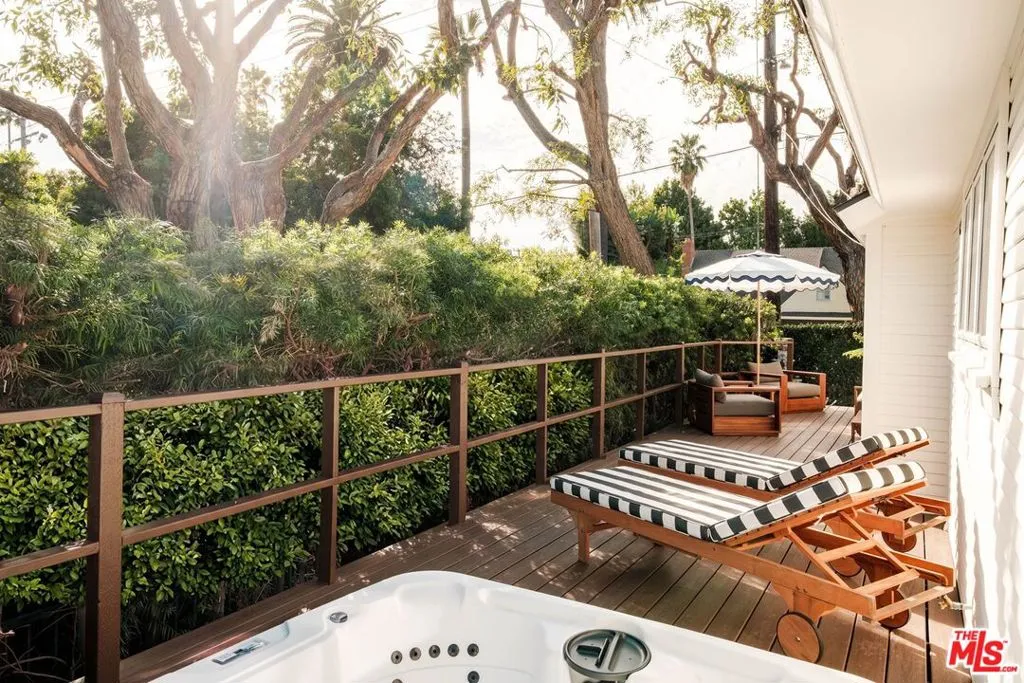 Bring your toothbrush! This fully renovated Beverly Hills adjacent California Bungalow offers refined, turnkey living in a serene and private setting. The bright and inviting main residence features two bedrooms and two bathrooms, complemented by a separate guest house with a one bedroom flex space and full bath, ideal for guests or work from home living. Fully furnished and thoughtfully designed, the home blends classic architectural charm with modern comfort. The outdoor deck provides an inviting setting for both entertaining and everyday relaxation, complete with a jacuzzi and fountain that enhance the home's retreat-like feel. The property is secured by mature hedges, a coded gate, and an alarm system, and includes convenient on site parking for two large vehicles via the Vista Grande entrance. A washer and dryer are conveniently located within the home, and the residence has never been lived in since its full remodel, completing this effortlessly refined and polished offering. Conveniently located within minutes of Beverly Hills and West Hollywood's finest dining, shopping, and experiences.