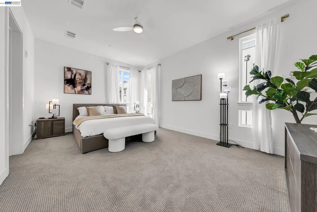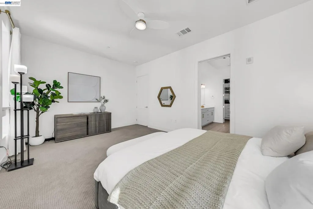 An abundance of natural light fills this modern condo, highlighting a dream kitchen with upgraded cabinets, countertops, backsplash, and a Culligan water softener. The open-concept layout seamlessly connects the kitchen, dining area, and living room, complemented by an office nook ideal for remote work. Enjoy stylish flooring throughout and a spacious outdoor patio/balcony perfect for BBQs and relaxing at night with the fireplace keeping you warm. To top off the luxurious space, all three bathrooms include sensor-operated bidets. The primary bedroom offers a serene retreat with a custom closet, dual sinks, and an en-suite bath. The side-by-side two-car garage provides generous space and feels practically attached, with only a few steps to the front door. Located directly across from the Warm Springs BART Station, this home offers unmatched convenience. Just outside the building, you’ll find a park, ample guest parking, and a beautifully maintained community with a pool and clubhouse. Retail shops are moments away, and the property is close to G.M. Walters Middle School, John F. Kennedy High School, and Stratford School. Make sure to watch the video!