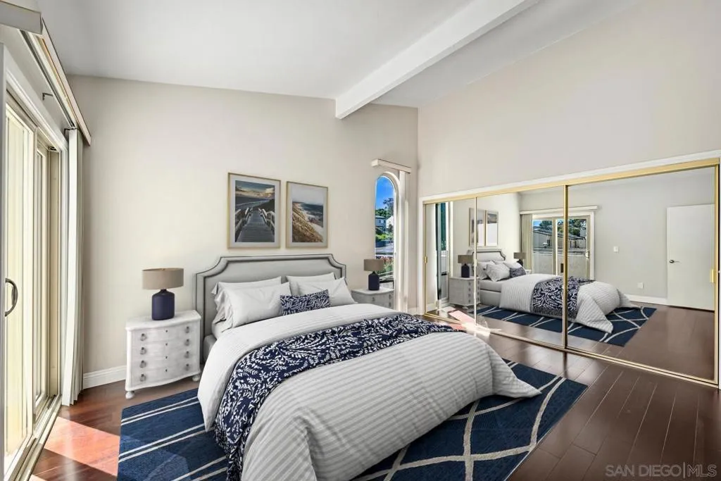 Offering the privacy and presence of a detached residence, this fully updated home in La Jolla Village Estates opens to breathtaking city views that unfold the moment you step inside. Designed to capture abundant natural light and sweeping scenery, the home features dual-paned windows throughout and fully owned solar for exceptional efficiency and minimal electric costs. A beautifully appointed kitchen anchors the living spaces, while a cozy fireplace adds warmth and ambiance to the main living area. Seamless indoor-outdoor living defines the home, with two expansive patios and a private balcony, including a wraparound entertaining terrace perfectly positioned to showcase dramatic city lights and unforgettable sunset views. The spacious primary suite offers a serene retreat with direct balcony access, ideal for morning coffee or evening relaxation. Residents enjoy resort-style community amenities including a pool, spa, and playground, all set within a lush, park-like setting. A two-car garage adds convenience, while the prime location—just blocks from UCSD and minutes to freeway access, UTC Mall, La Jolla Shores, and the best of coastal living—delivers an exceptional blend of comfort, sophistication, and coveted La Jolla lifestyle.