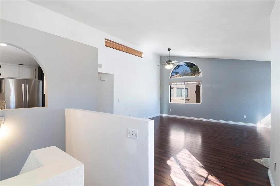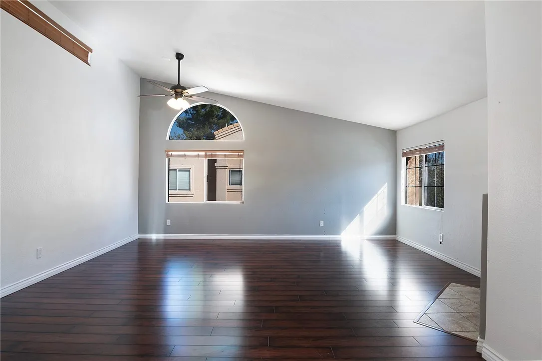 Welcome to this beautifully updated end-unit townhome in the heart of Stevenson Ranch, offering 2 spacious bedrooms, 2 full bathrooms, and an abundance of natural light throughout. Soaring vaulted ceilings, recessed lighting, and stylish laminate flooring create an airy, modern feel from the moment you step inside. The kitchen is thoughtfully designed with stainless steel appliances and a chic two-tone cabinetry scheme featuring rich dark lowers and crisp light uppers for a true designer touch. It flows seamlessly into the dining area and inviting living room, complete with a cozy fireplace and access to a private balcony which is perfect for morning coffee or unwinding in the evening. The primary suite is generously sized and features high ceilings, a ceiling fan, and a walk-in closet. The secondary bedroom is versatile and ideal for guests, a home office, or additional living space. Additional highlights include a direct-access two-car garage with epoxy flooring and a full-size laundry area with washer and dryer. Ideally situated near guest parking, the community pool, and playground, this home combines comfort and convenience. Located just minutes from the 5 Freeway, Pico Canyon stairs, Stevenson Ranch Marketplace, dining, shopping, and more — this townhome truly has it all.
