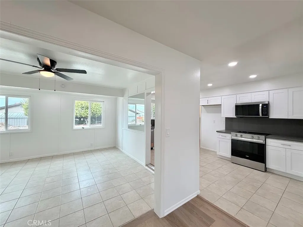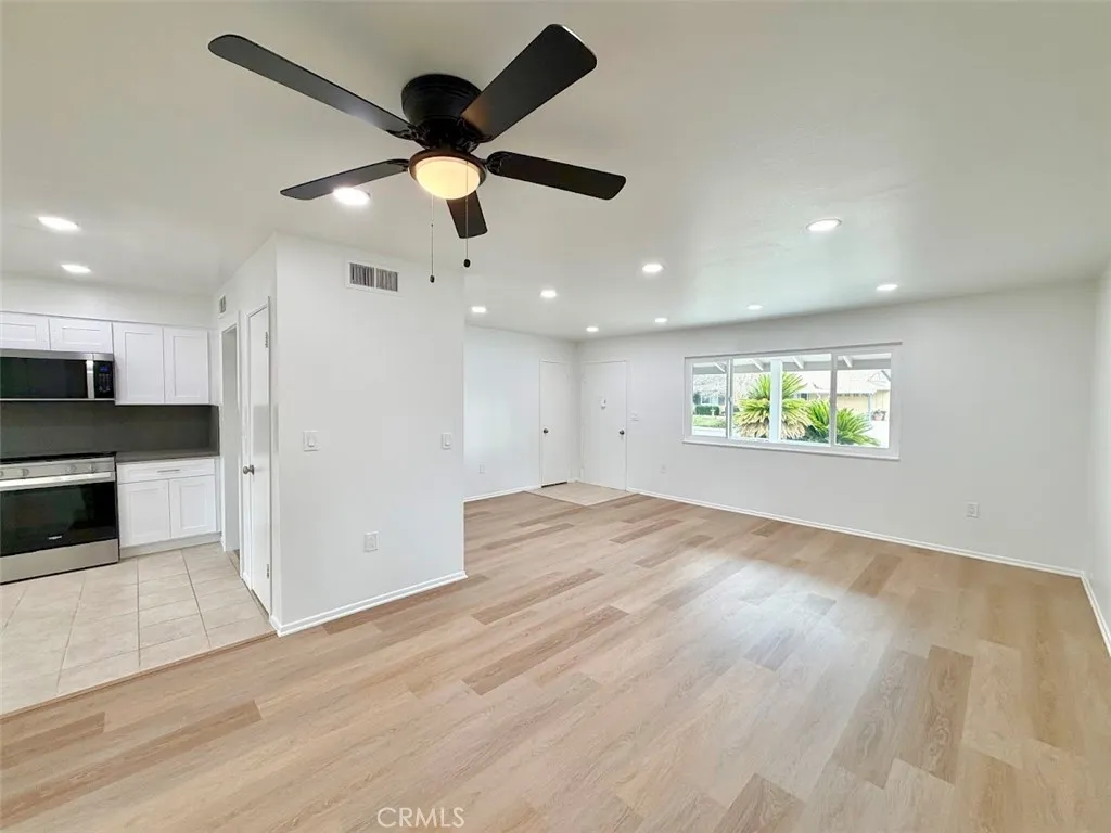 Fully renovated turnkey home in one of southern California's largest active adult communities. This open floor plan home has been upgraded from top to bottom: freshly painted interior and exterior, new energy-efficient windows for the entire home, luxury vinyl plank and tile flooring, new kitchen and vanity cabinets with quartz countertops and backsplashes, all new stainless steel appliances, as well as recessed lighting in the kitchen, living areas and bathroom. The home also features an indoor laundry room as well as an oversized single-car garage. 55+ Community.