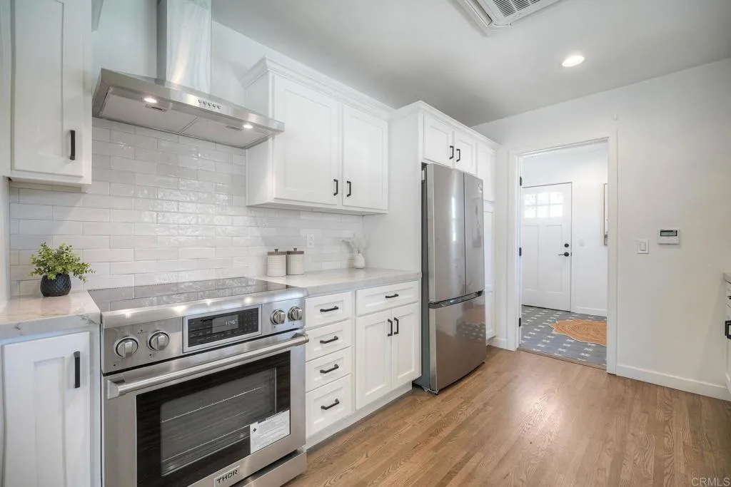 Stunning fully renovated beach home with ADU, ideally situated in the coastal community of Oceanside. This exceptional property is located within walking distance to award-winning beaches, popular dining spots, local markets, and everything this vibrant, up-and-coming neighborhood has to offer. Set on a Spacious Corner Lot along a quaint street, the home features New Vinyl Fencing, Turf, and Drought-tolerant landscaping, creating a private and low-maintenance outdoor space. The property boasts the Only Private Driveway on the block, along with the charm of a mature pomegranate tree, adding both character and curb appeal. Both the main house and the ADU have been extensively upgraded with New Roofs featuring Extended Eaves, along with Updated Electrical, Plumbing, and HVAC systems, including Mini-splits and a Multi-zone heat pump. Additional improvements include Tankless Water Heaters, New Interior and Exterior Paint, Fresh Baseboards, Ceiling Fans, Recessed Lighting, New Windows, and stylish window coverings throughout. The Kitchens have been thoughtfully renovated with new Stainless Steel Appliances and soft-close drawers, while the Bathrooms showcase New Tile Flooring, Modern vanities, Glass surrounds, and updated fixtures. The main house includes its own dedicated laundry room with gas and electric hook-ups, while the ADU offers a space for a full-size electric washer and dryer, providing flexibility for guests, extended family, or rental potential. This beautifully upgraded coastal property offers both lifestyle and versatility—You do not want to miss this one!