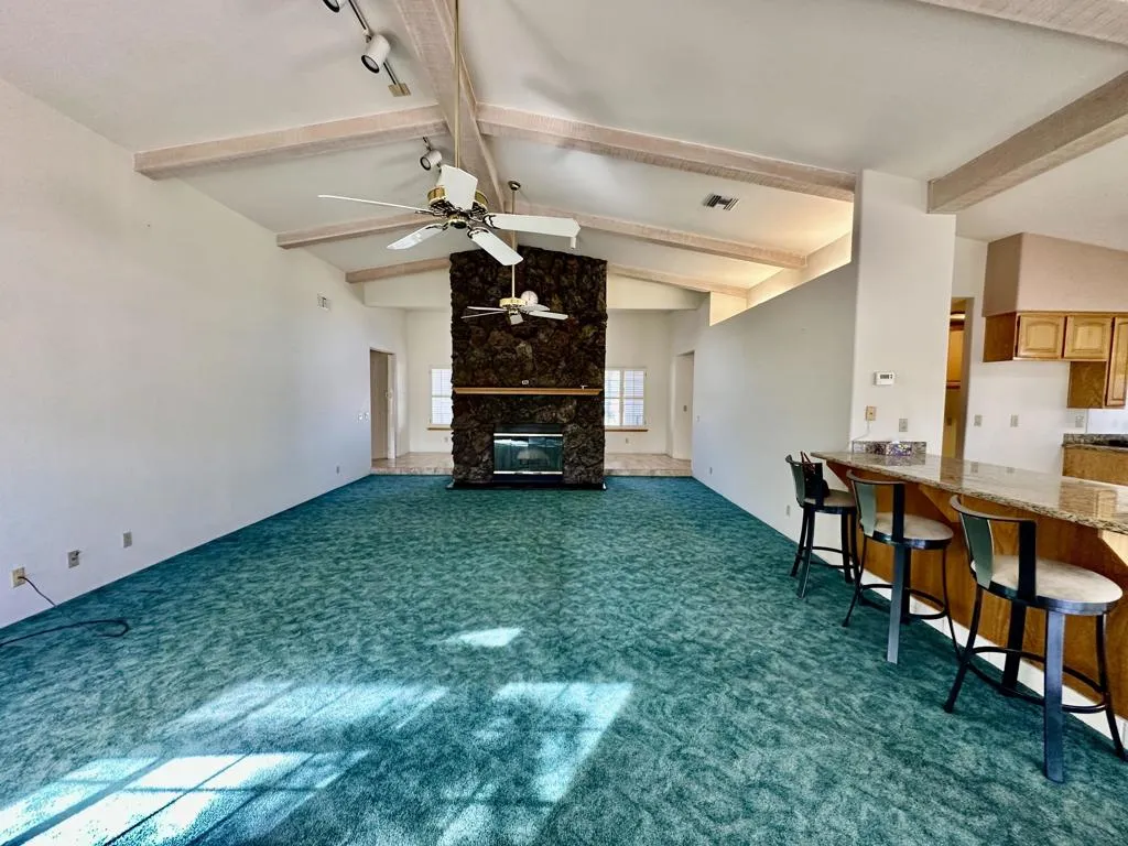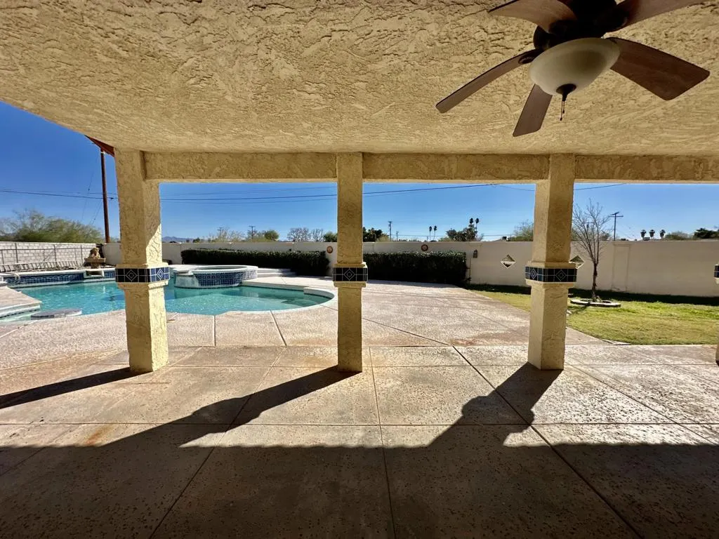 Entertainers Dream Home. Spacious and beautifully designed 3-bedroom, 3-bath residence offering approximately 2,500 sqft of living space, perfectly situated on an extra-large private lot. This home features an open and airy layout with high ceilings, abundant natural light, and a welcoming formal entry that sets the tone upon arrival.The heart of the home is ideal for entertaining, showcasing granite countertops, double kitchen islands, an extra-large sink, ample cabinetry, and a oversized pantry. A formal dining area provides the perfect setting for gatherings, while expansive windows frame the living spaces and enhance the bright, open feel. The living room is anchored by a fireplace, adding warmth and character.Designed with comfort and functionality in mind, the home includes dual primary suites, each with generous bathrooms. The main primary bath offers a soaking tub and separate walk-in shower, creating a true retreat. A spacious laundry room adds everyday convenience.Step outside to your own private oasis featuring a pool and spa, covered patio, and plenty of space to relax or entertain. The oversized garage, large driveway, and extensive parking accommodate vehicles, toys, and guests with ease.Located in a great area with privacy and room to breathe, this property truly is an entertainer's dream with space, comfort, and versatility both inside and out.