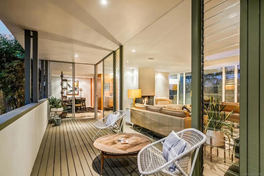 An architecturally significant mid-century modern residence by acclaimed architect Roger Matthews, where design and environment merge to create a living work of art. Strong horizontal lines, a refined low profile silhouette, and expansive floor to ceiling glass shape the home as both sculpture and shelter, with natural light and bamboo views becoming part of the experience.Original mid-century elements have been thoughtfully preserved and elevated with modern finishes. Indoor outdoor living unfolds across decks on both sides of the home, creating spaces that feel intentional, expressive, and effortlessly livable. Located in the sought after Bird Rock neighborhood of La Jolla, this rare offering delivers architectural integrity and a refined coastal lifestyle. An architecturally significant mid-century modern residence defined by strong horizontal lines, a refined low profile silhouette, and a seamless connection to the surrounding landscape. Designed by acclaimed architect Roger Matthews, the home embodies the principles of classic Southern California modernism with an emphasis on light, proportion, and indoor outdoor living. Located in the sought after Bird Rock neighborhood of La Jolla, the home is thoughtfully oriented to create privacy while embracing nature. Floor to ceiling glass fills the interiors with natural light and frames views of mature bamboo, reinforcing the home’s strong relationship to its setting. Clean lines, open living spaces, and purposeful design details create an environment that feels both intentional and livable. Original mid-century elements have been carefully preserved and elevated with modern finishes, maintaining the integrity of the architecture while enhancing everyday comfort. The main level offers two bedrooms and two bathrooms, flanked by decks on both sides of the home that extend the living space outdoors. A Jacuzzi hot tub enhances the relaxed coastal experience. The lower level guest suite features a private entrance and offers flexibility for guests, creative use, or a dedicated workspace. A two car garage with alley access completes the property. A rare opportunity for mid-century modern enthusiasts seeking architectural authenticity, privacy, and a lock and leave lifestyle in one of La Jolla’s most desirable coastal neighborhoods.