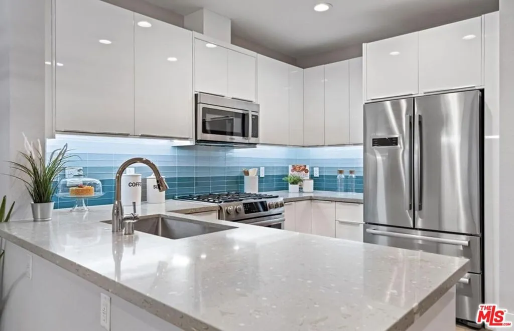 Welcome to 901 S Gramercy Drive #204, a beautifully upgraded 2-bedroom, 2-bathroom residence in the heart of Koreatown.This modern home features an open-concept layout with premium finishes throughout, including French Oak LVP flooring, recessed lighting, and a convenient in-unit side-by-side washer and dryer.The chef-inspired kitchen showcases quartz countertops, an elegant ombre subway tile backsplash, Bosch stainless steel appliances, and sleek European-style cabinetry perfect for both everyday living and entertaining. The spacious primary suite offers a private balcony, dual vanities, and a generous walk-in closet, creating a true retreat. Tucked away at the rear of the building and complemented by dual-pane windows, the unit provides exceptional privacy and tranquility. Additional highlights include two tandem parking spaces with EV charging, conveniently located on the first floor. Ideally situated near Downtown Los Angeles, Hancock Park, Larchmont Village, Los Angeles County Museum of Art, and Hollywood, you'll enjoy easy access to shopping, dining, and cultural attractions. Experience the best of city living schedule your private tour today!