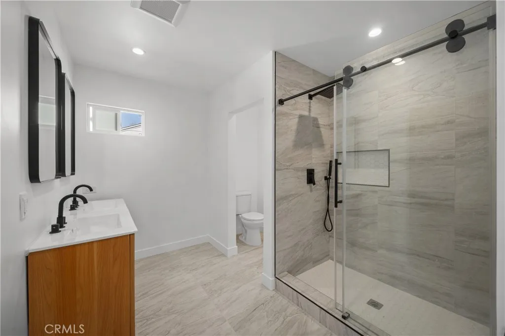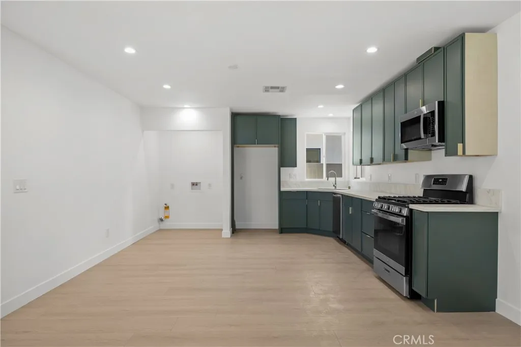 Contemporary redesigned Lake Balboa Home! Approximately 1,450 SF of beautifully curated living space featuring 3 bedrooms and 2 elegant bathrooms. An open, light-filled floor plan seamlessly connects the living, dining, and kitchen areas—ideal for hosting family gatherings and entertaining with ease. The expansive primary suite offers a walk-in closet and double vanity, creating a serene private retreat. Thoughtfully refreshed with sleek modern cabinetry, quartz countertops and laminate flooring. Fully equipped with premium new appliances, including refrigerator, washer, and dryer. Enhanced curb appeal with contemporary landscaping and mature olive trees. A rare turnkey lease offering understated luxury and modern comfort in Lake Balboa. This home has one common wall and no backyard. Ample on street parking and conveniently located near restaurants, shops, schools and more. Available for immediate move in.