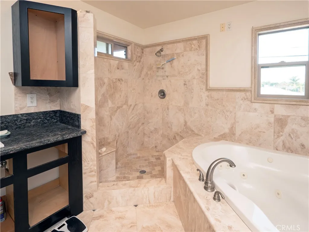 The spacious primary suite offers a true retreat, complete with a private balcony, and a jetted jacuzzi tub designed for relaxation.