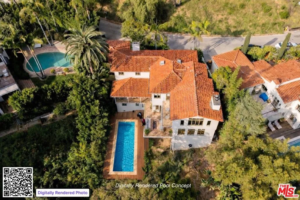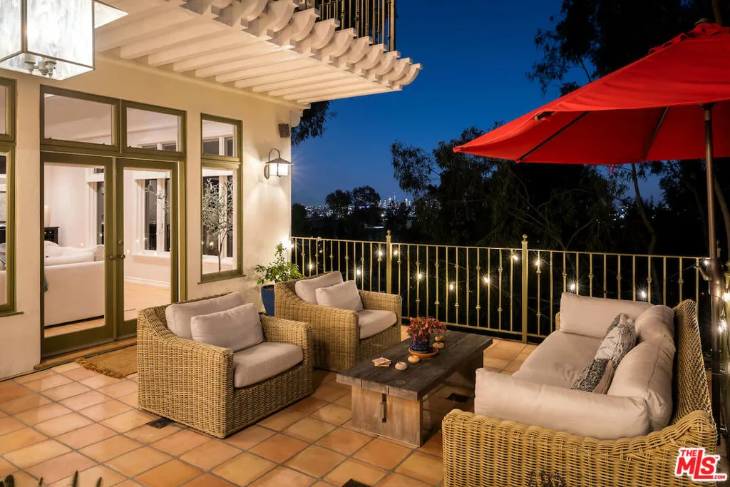 A rare opportunity in Outpost Estates. The ultimate Spanish Revival on one of Outpost Estates' most sought-after streets, walled and gated for exceptional privacy. Enter through the front gate into a stunning courtyard with a tranquil fountain, lush landscaping, and dramatic nighttime lighting. From the moment you step inside, you're greeted by a breathtaking, head-on city view. The floor plan is ideal-gracious, flowing, and beautifully proportioned throughout. The living room is a true pleasure to relax in, while the spectacular, remodeled chef's kitchen, ( which is an absolute pleasure to create in), opens seamlessly to an expansive family room, creating an extraordinary space for everyday living and unforgettable entertaining. These rooms spill out to a generous terrace overlooking the city lights. The primary suite is a private retreat with a sitting room, terrace, remodeled bath, and a large walk-in closet-all enjoying the captivating views. A fully self-contained guest suite offers its own kitchen, living room, bedroom, and bath. Spacious, warm, and inviting, this quintessential California hacienda offers serene living in a peaceful, quiet setting.