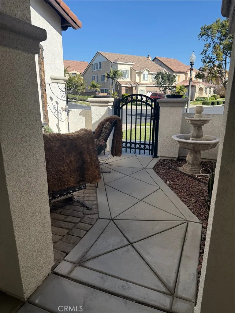 Beautiful 4BD/3BA Spanish-style home in the prestigious gated and 24-hour patrolled Shady Trails community of North Fontana. Situated on a private wrap-around corner lot with Italian Cypress, fruit-bearing olive trees, and scenic mountain views. Features include custom lighting and cabinetry, Viking appliances, granite countertops, wood flooring, hand-crafted barn doors, custom paint, and custom vanities in secondary baths. Open floor plan with striking loft and abundant natural light. Spacious primary suite with sitting area, dual vanities, and large jetted tub. Enjoy year-round outdoor living with a full-length covered patio with pergola caps and a private gated courtyard with fountain. 2-car garage with tandem parking and storage. Resort-style community amenities include clubhouse, fitness center, pool, tennis courts, playground, and BBQ areas.