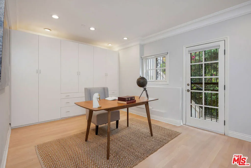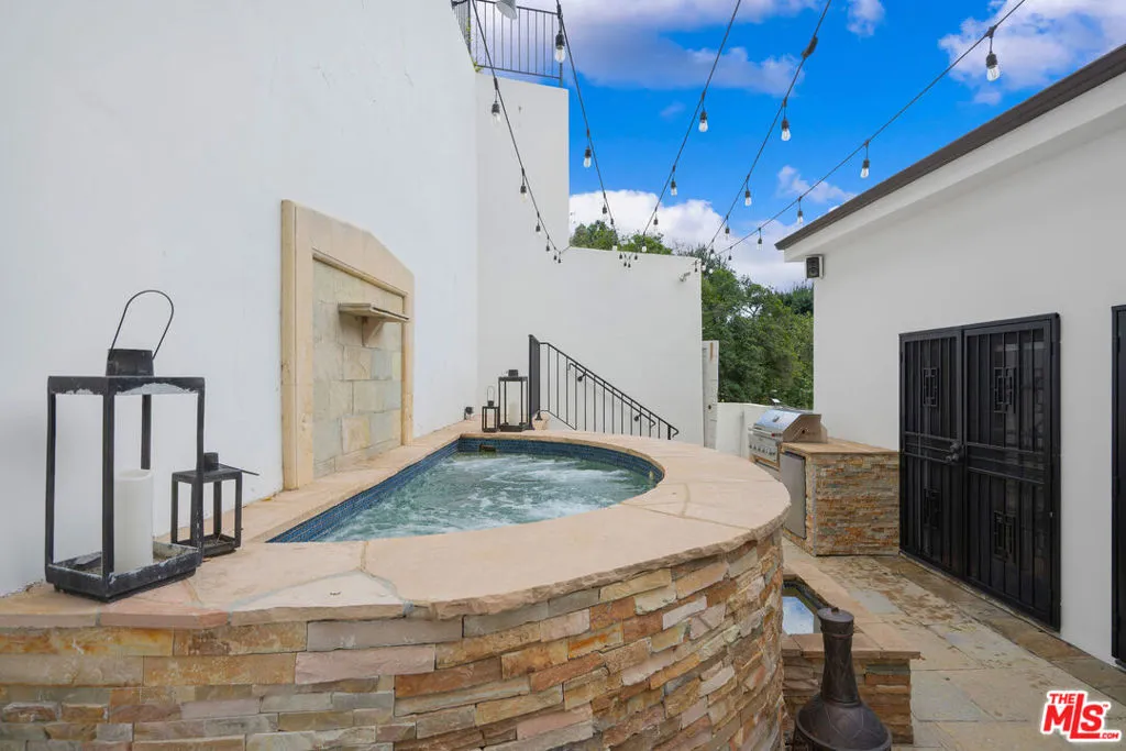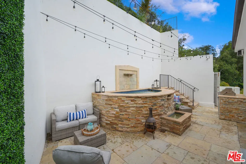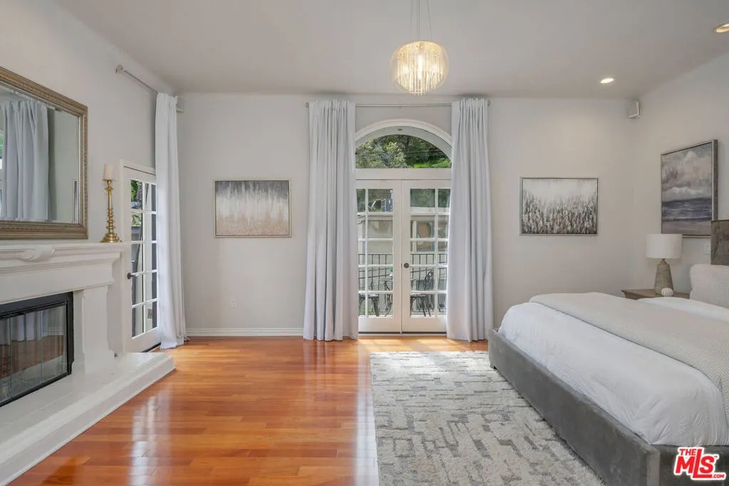 French chteau vibes meet pure California living. Set on one of the most sought-after streets in Beverly Hills Post Office, just minutes from the Beverly Hills Hotel, this light-filled, turn-key residence offers style, flow, and privacy. The contemporary interior features hardwood floors throughout and a newly remodeled kitchen designed for everyday living and effortless entertaining. The home features four bedrooms and three baths, with the fourth bedroom ideally suited as an office or bonus room. The primary suite is a standout with a fireplace, private balconies, spa-like bath, and walk-in closet. Multiple terraces capture serene canyon and nature views. The secluded backyard offers a private spa, built-in BBQ, and outdoor TV perfect for hosting or unwinding. A two-car garage with direct entry and a generous storage room complete the home. Great layout. Easy flow. Instant "home" feeling. This is BHPO living done right.
