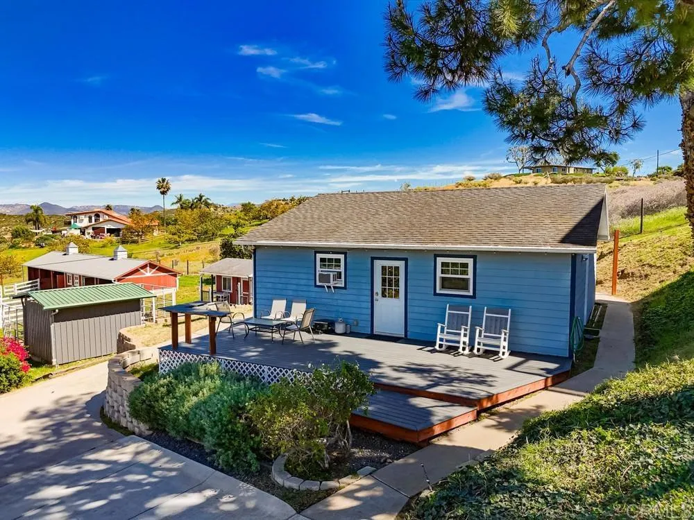 Seller will entertain offers between $2,142,000 - $2,250,000. Incredible versatility and stunning panoramic views await at this equestrian estate, which features THREE RESIDENCES on a highly developed 2.35 acre lot. The 3,465 sq ft main house offers soaring ceilings, beautiful finishes, a whole house fan, central vac, laundry chute, sub-level with more storage, 4 bedrooms AND an attached 1 bed/1bath apartment with a separate entrance. The 1,100 sq ft detached guest house offers 3 beds (1 is an optional bedroom/den), 2 full baths and a private backyard. There is new HVAC equipment for all 3 residences and owned solar energy systems on both the main house and detached guest house. Another detached building houses a 3-car garage and bonus room (currently used as an office) with a half bath. Enjoy a NEW high-end pool with a safety enclosure, large patio, waterslide, grotto, LED lights, and AOP Ozone system for excellent water quality. Rinse off after a swim in the enclosed outdoor bathroom with a shower. A charming red barn offers 2 oversized stalls with runs, a hay room and a tack room. An outdoor riding arena completes this amazing horse property. A large chicken coop with run is set up for collecting fresh eggs each morning. Multiple fruit and avocado trees and large planter boxes complete the home garden. This fully-fenced property with a gated driveway is located on a well-maintained private road in Bonsall, only 30 minutes from the beach in Oceanside. Experience coastal breezes and even a view of the ocean on a clear day from this hilltop home!