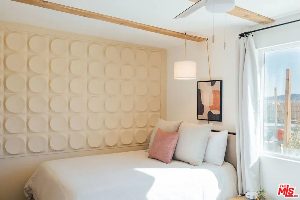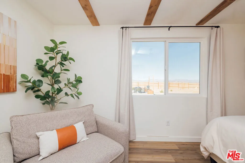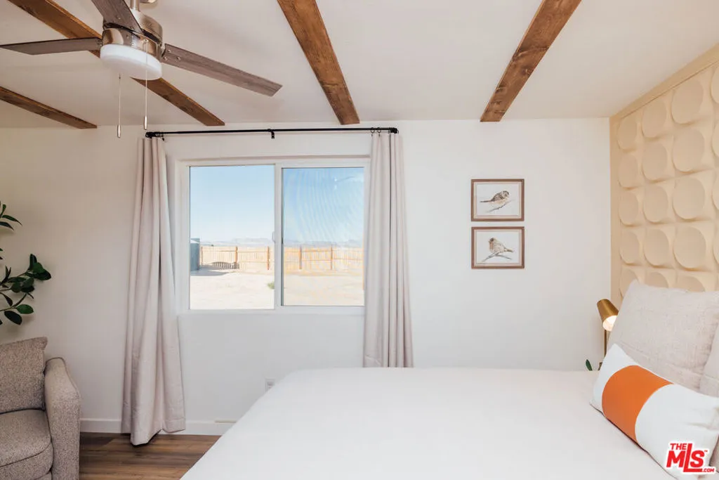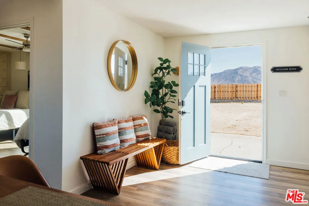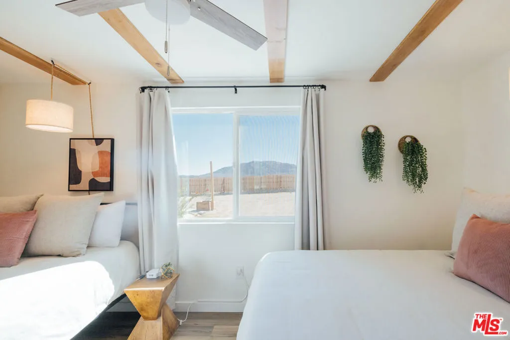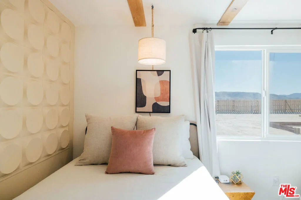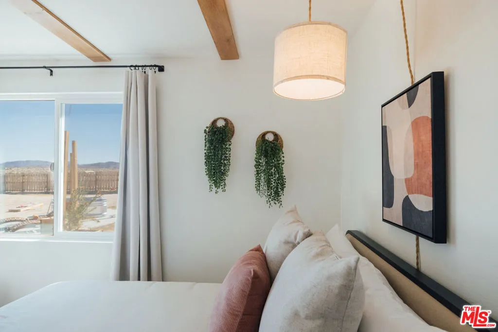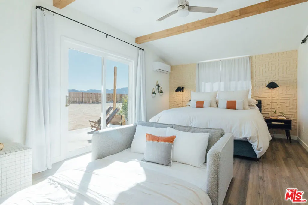 Welcome to Wanderlust, a private sanctuary set on five pristine acres near Joshua Tree. Thoughtfully designed for rest and reset, this desert retreat blends quiet luxury with the raw beauty of the Mojave offering a rare balance of comfort, privacy, and possibility. Every detail has been curated with intention, from spa-inspired baths and seasonal soaking tubs to a boutique coffee and tea bar. Whether hosting friends beneath a canopy of stars or waking to panoramic mountain views wrapped in Cariloha linens, Wanderlust delivers an elevated desert living experience designed to feel both refined and deeply restorative. Beyond its romantic appeal, the property offers a compelling level of modern independence. A newly installed private well and electricity as the primary utility provide a strong foundation for a self-sufficient lifestyle, with the property ideally positioned for future solar and a transition to full off-grid living. Currently operating as a thoughtfully designed short-term rental, the home is well-received for its design, privacy, and five-star guest experience, while also offering immediate flexibility for personal use, income, or a blend of both. Discover a home where you can truly disconnect without giving up a single comfort.