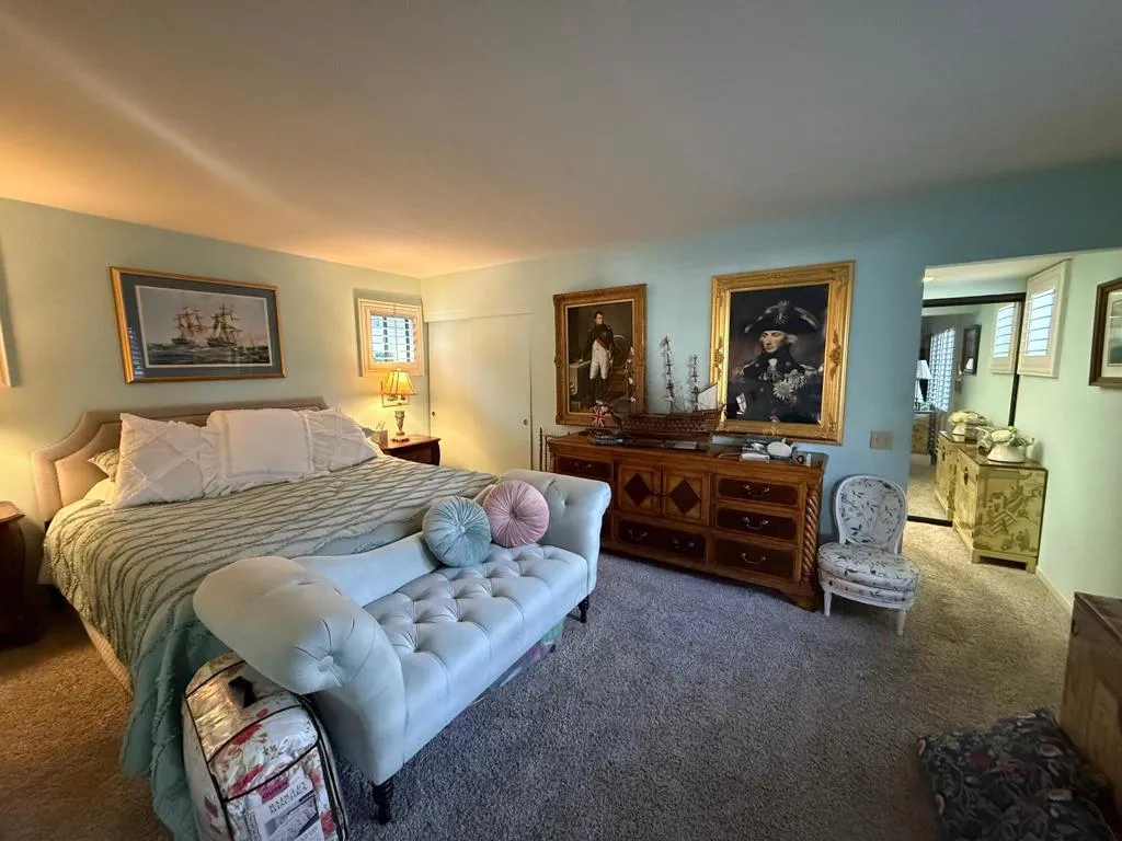 Professional photography to follow once the home has been fully cleared. This desirable end-unit bungalow offers no neighbors above or below and is ideally positioned near the center of the community, set back from main roads for added privacy and quiet. A welcoming front courtyard leads into a thoughtfully designed split-bedroom floor plan. Inside, the home features a spacious great room highlighted by bay windows and shutters throughout, creating an inviting and light-filled setting. A sliding door opens to an additional private patio, providing seamless indoor-outdoor living.Located within the historic Riviera Gardens--originally part of the iconic Riviera Hotel--owners enjoy multiple heated pools and spas, tranquil greenbelts, and beautifully maintained grounds. Just minutes from Downtown Palm Springs, shopping, dining, and entertainment.