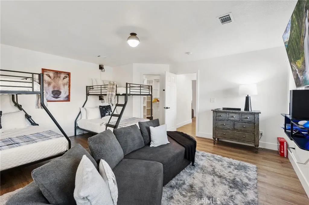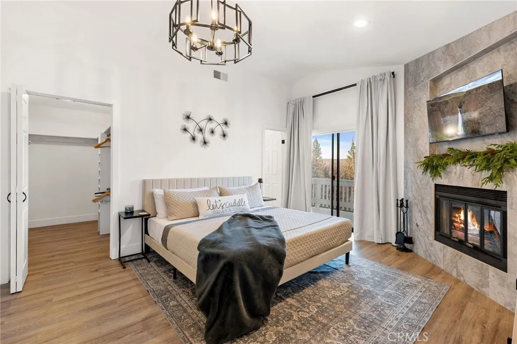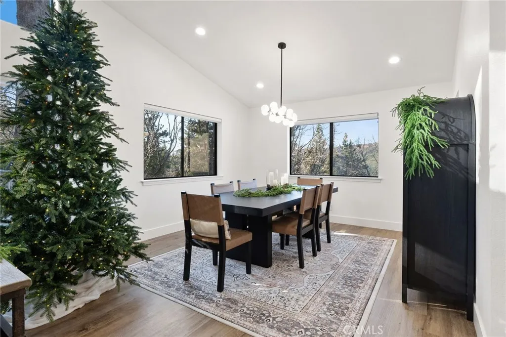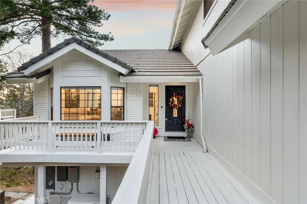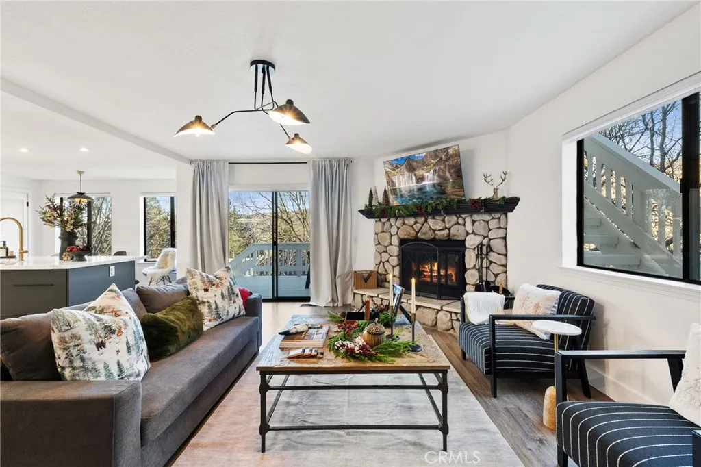 Set on a quiet cul-de-sac in the Enchanted Forest neighborhood of Running Springs, this fully turn-key mountain home delivers rare privacy and immersive forest views across all three levels. Thoughtfully renovated, it pairs clean contemporary finishes with warm mountain character in a setting that feels both secluded and refined. The kitchen is a true showpiece, designed for both daily living and entertaining. It features a 48” black stainless steel ZLINE professional-grade range and matching appliances, a 45” Kraus workstation trough sink, brushed brass fixtures, a pot filler, and an appliance garage with built-in electrical. Dolomite and Black Mist honed granite extend across the countertops and full backsplash, complemented by flat-panel European rift white oak cabinetry and a striking 8-foot island with double-sided black cabinetry. Living spaces are warmed by three fireplaces, including wood-burning and gas fireplaces in the family room and primary suite, plus an electric fireplace in the game room. The game room is theater-ready with surround sound, a floating entertainment center, a bar/kitchenette, dual wine refrigerators, and custom wine storage. All four bathrooms have been fully renovated, while recent whole-home upgrades include new LVP flooring, fresh interior and exterior paint, updated lighting throughout, and new door hardware. Outdoor living is equally compelling, with multiple decks, a private spa, garden beds, and a charming chicken coop. Confidence-inspiring improvements include two laundry areas, a full-house generator, new electrical panels, a brand-new water heater, and an upgraded central air system. Ideally located near Lake Arrowhead, Green Valley Lake, Big Bear, and Snow Valley Ski Resort, this is a polished, move-in-ready Enchanted Forest retreat. Designed for comfort, reliability, and year-round mountain living.