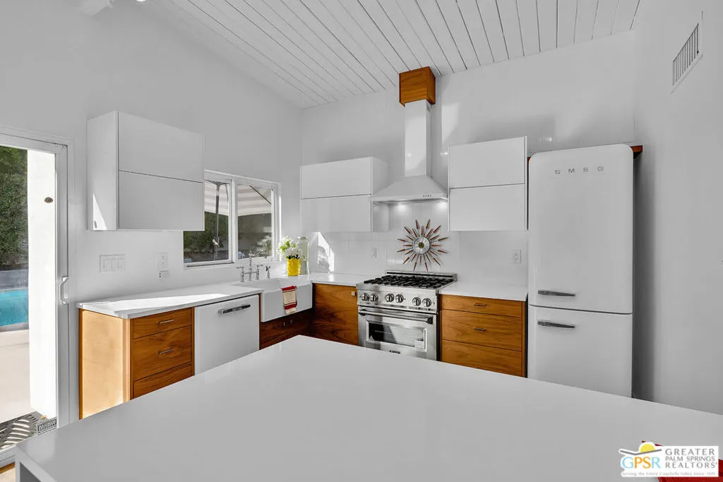 Discover 271 N Easmor Circle, located in the iconic Sunmor Estates of Palm Springs. Built in 1958 by the celebrated Alexander Construction Company, this classic mid-century modern residence showcases the clean lines, open planning, and indoor-outdoor connection that define Palm Springs' architectural legacy. Signature features include post-and-beam construction, tongue and groove ceilings, and expansive walls of glass that flood the interiors with natural light while framing the west-facing outdoor living spaces. The three-bedroom, two-bath layout centers around a spacious living room with a gas fireplace, flowing effortlessly into an adjoining denboth sharing a dramatic glass wall that opens to the pool and yard beyond. The renovated open kitchen, with its Smeg and Zline appliances, respects the home's modernist roots while offering updated functionality for today's lifestyle making it ideal for both everyday living and entertaining. Outside, the oversized 11,000+ sq ft lot delivers the quintessential desert experience, with a private pool, outdoor shower, built-in shade structure, modern fire pit, and BBQ area designed for relaxed outdoor living and sunset gatherings. Set at the end of a quiet cul-de-sac, the property enjoys exceptional privacy while remaining moments from downtown Palm Springs. A true example of timeless mid-century design, thoughtfully maintained and ready to enjoy. Private showings by appointment.