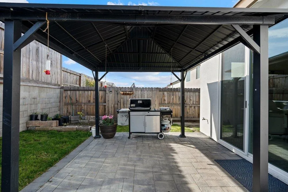 Value Without CompromiseModern Living in Hollister. Welcome to 2111 Rosewood Dr., a nearly new single-level home on a premium lot offering space, style, and exceptional value. Must see! Built in 2022, this 4-bedroom, 2.5-bath home offers 2,054 sq ftideal for first-time, move-up, or Bay Area buyers seeking more home for their investment. Located in a desirable Hollister community with newer schools, this home offers easy access to the Bay Area and the coast, making it a great option for commuters. The open-concept living space is filled with natural light and enhanced by custom lighting in the kitchen and dining area, creating a bright and inviting atmosphere. The upgraded kitchen features a large island, granite countertops, and enhanced cabinetry. Lifetime warranty electric blinds add convenience and style. The flexible 4-bedroom layout includes a private primary suite. Enjoy a private backyard with gazebo and low-maintenance landscaping, plus a paver-upgraded side yard ideal for entertaining or relaxing. Owned solar, energy-efficient construction, an EV-ready garage, and included appliances add long-term value and convenience. Upgrades galoregranite, cabinetry, pavers, landscaping, lighting, and window coveringstruly turnkey and ready to enjoy.