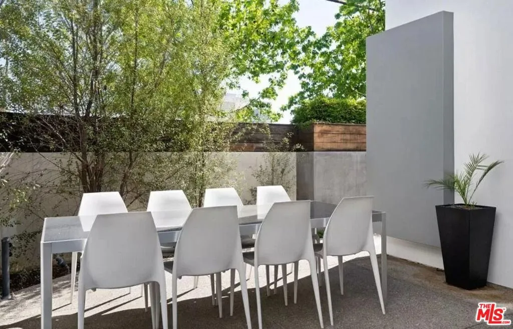 Located just one block away from Melrose Ave, this contemporary gem provides a private dwelling, while still being close to all the trendy shops and restaurants of West Hollywood. This stunning home features three spacious bedrooms, each with its own en-suite bathroom, including a luxurious primary suite. In addition to the bedrooms, there is a bonus area on the second floor, which would make for a good home office or creative space. The gourmet kitchen is a chef's dream, outfitted with stainless steel appliances, a wine fridge, a sit-up island, and a dedicated dining area with a cozy fireplace, making it ideal for hosting gatherings or enjoying meals. The formal living room flows seamlessly into the dining area and kitchen, while a step-down family room adds a relaxed space for entertaining or unwinding. The outdoor spaces are equally inviting. The backyard serves as a private oasis, complete with a patio featuring an outdoor couch and dining table, perfect for al fresco evenings. The front yard, surrounded by lush trees and landscaping, provides a peaceful retreat from the city. Additional conveniences include a two-car garage and an in-home washer and dryer. This home is a rare find in a prime location, offering the ideal balance of modern convenience, luxurious amenities, and serene outdoor spaces. Don't miss the opportunity to make this dream home your reality!