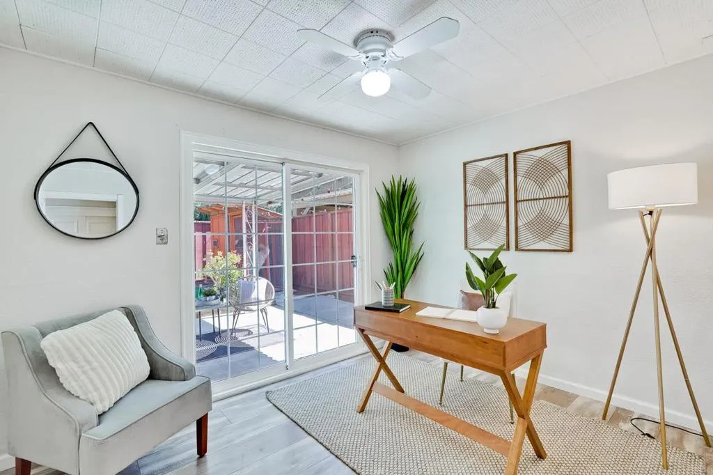 Welcome to this nicely appointed, single-story, four-bedroom, 2-bathroom home with an attached garage in San Jose's Cambrian Park neighborhood. This inviting residence seamlessly blends comfort and functionality. The modern kitchen features granite countertops, stainless steel appliances (including a microwave and dishwasher), a gas range, and recessed lighting, with direct access to the backyard. The interior is finished with durable vinyl plank and linoleum flooring throughout, complemented by forced air heating and PG&E solar panels for enhanced energy efficiency. The front yard includes drought tolerant plants and an amazing citrus tree. The backyard has a nice grassy space with a covered patio, a tool shed, and even a chicken coop. Come see this newly unoccupied gem in Cambrian Park!