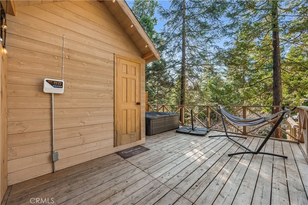 Step into a fairy-tale mountain retreat in the heart of Lake Arrowhead, just a short walk from the lake! This house is a rare gem with its own newly built Sauna—perfect for unwinding after a day on the lake or hiking in the mountains. Imagine stepping into your private sauna, surrounded by the peaceful forest, and letting the stress of the day melt away. It’s a luxury you won’t find anywhere else nearby, making this home truly unique and unforgettable. Living room offers plenty space to relax and gather with family in front of the fireplace, Panoramic windows featuring 180 view of the forest, the kitchen blends modern convenience with rustic charm, has a breakfast bar, flowing seamlessly to a wraparound deck that invites indoor-outdoor living and showcases serene forest vistas. Thoughtfully designed across two levels, the home offers a main-floor bedroom with a full bath, while the upper level boasts two additional bedrooms with a full bath and a gable roof with skylight windows, filling the space with natural light and a sense of airy openness. Ample parking for 3-4 cars on the driveway. This home is a one-of-a-kind retreat, combining refined comfort, breathtaking views, and a magical ambiance that captures the essence of Lake Arrowhead living.