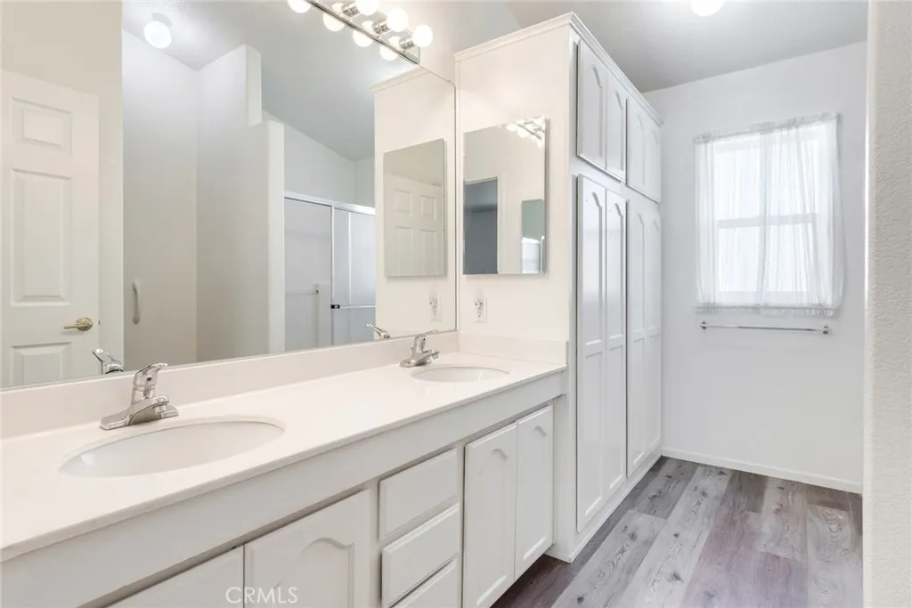 Welcome to this turnkey gem in the highly sought-after Villa Magnolia 55+ gated community. This beautifully maintained home features a chef’s kitchen with barstool seating, abundant storage, laminate countertops, and a custom pull-out pantry. The open-concept layout flows seamlessly into the cozy dining and living area, making it perfect for entertaining or hosting family gatherings. Enjoy neutral paint, multiple skylights, recessed lighting, window blinds, and ceiling fans throughout. The oversized primary suite offers a ceiling fan, mirrored closet doors, and an en-suite bathroom with a dual-sink vanity, a walk-in shower, and additional storage. A comfortable guest bedroom and full guest bathroom with a tub/shower combo provide space for visitors. Added highlights include a separate bonus office/library space, an indoor laundry room, a covered 2 car covered carport and a low maintenance yard with attractive landscaping. Ideally situated on a desirable corner lot, this home offers extra peace and comfort. Community amenities include, gated entry, a sparkling pool, RV parking, and a clubhouse with a fitness center and more. This is 55+ living at its best — schedule your private showing today!