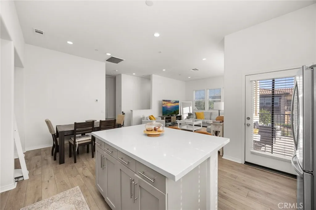 Located in one of Hacienda Heights’ most desirable and convenient neighborhoods, this quiet newer community offers a well-balanced lifestyle. This beautifully designed 3-bedroom townhome emphasizes comfortable indoor-outdoor living, starting with a charming front porch that creates a warm and inviting entry. A second-floor deck provides additional outdoor space, ideal for enjoying fresh breezes or relaxing with a book. The home features a highly desirable first-floor bedroom and full bathroom, offering flexibility for guests, home office use, or multi-generational living. Upstairs, the main living level showcases a spacious open-concept floor plan highlighted by soaring 10+ foot ceilings that enhance natural light and create an airy atmosphere . The kitchen and living areas are enhanced with numerous designer upgrades, including upgraded electrical, recessed LED lighting, painted gray maple shaker cabinetry throughout, and quartz kitchen countertops. An upgraded designer flooring package with laminate flooring runs through the main living spaces, providing both durability and modern style. Thoughtfully upgraded and well-maintained, this home offers modern comfort, functional design, and a desirable location within Hacienda Heights.