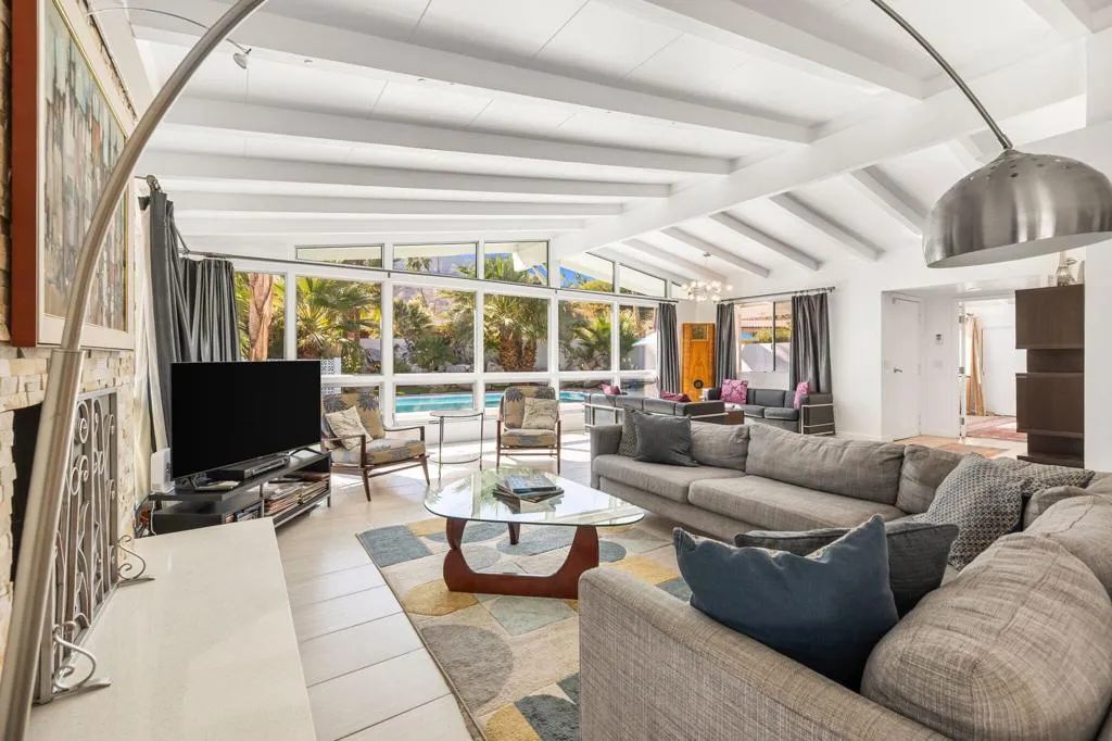 A True 'Mid-Century' Jewel in Magnesia Falls CoveThis stylish 1956 Mid-Century home offers three bedrooms plus a flexible office/den or optional fourth bedroom. The open floor plan seamlessly connects the living room, kitchen, and dining area, thoughtfully designed to showcase the home's iconic architecture.WALLS OF GLASS blur the line between indoors and out, flooding the interior with natural light and framing breathtaking poolside, mountain, and desert views. Enjoy sweeping mountain vistas from nearly every angle, both inside and outside.Outdoor lounging spaces are ideal for relaxing, entertaining, or simply soaking in the beauty of the cove. This is a rare opportunity to own an architecturally significant Mid-Century retreat in one of the area's most desirableAdditional features include OWNED SOLAR. Many homes of this era and style in the neighborhood are believed to have had involvement from television host Art Linkletter, adding to the historic allure of this exceptional property.