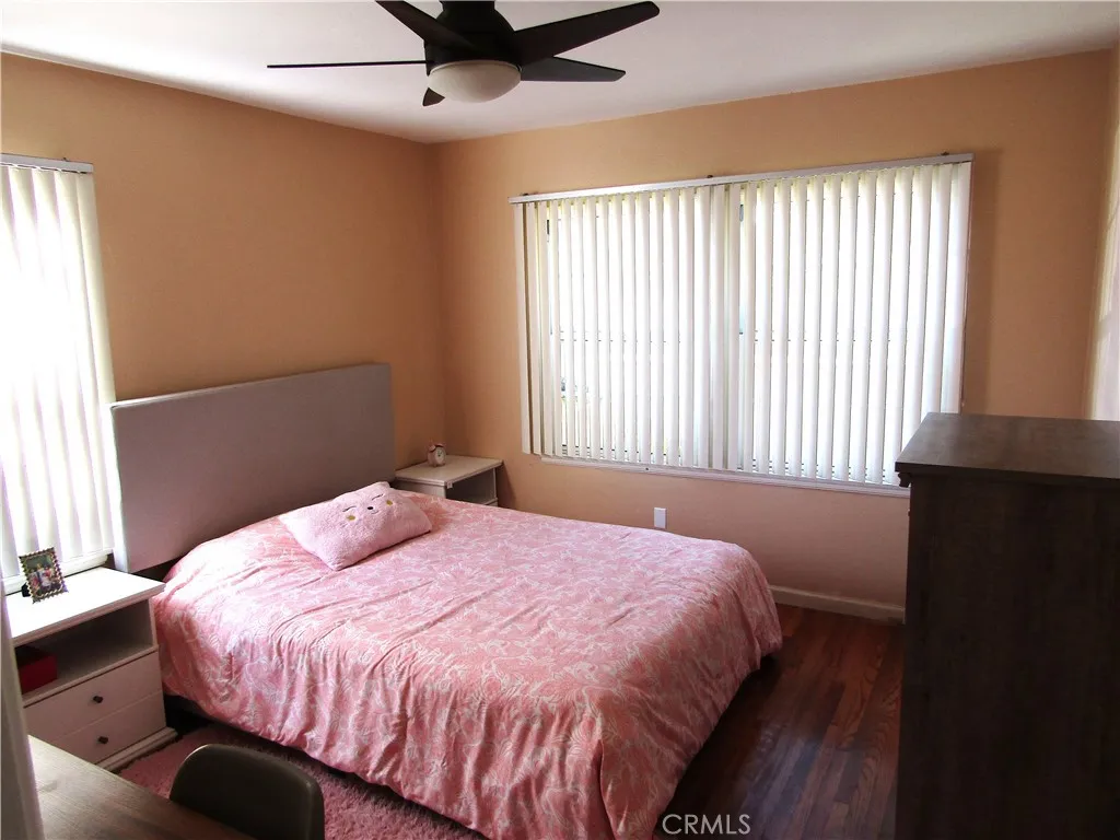 **SOLAR INCLUDED – Lower Electric Bills** The owner pays for solar, allowing you to run the air conditioning without the worry of soaring utility costs. This beautifully updated 3-bedroom, 1-bath residence offers over 1,265 square feet of spacious living, plus a versatile **den or office flex space** ideal for working from home, hobbies, or quiet retreat. Step into an inviting living room featuring refinished original hardwood floors, a classic fireplace focal point, and plantation shutters that blend privacy with timeless style. The kitchen showcases marble-veined quartz countertops, modern gray cabinetry, and a coordinated backsplash. A bay window nook provides the perfect spot for dining or casual mornings. Refrigerator included. The updated bathroom features a shower-over-tub and contemporary vanity. Bedrooms are generously sized; all comfortably accommodate queen-sized beds, and the primary suite offers a full wall of closet space. Additional highlights include a tankless water heater for energy-efficiency and on-demand hot water, in-home laundry with full-size stackable washer and dryer, plus an 8×10 storage shed for tenant use. The private backyard offers ample space for entertaining, relaxing, or enjoying time with your pet. Conveniently located near shopping, dining, schools, and freeway access, this home offers excellent walkability and everyday convenience. NOTE: The private, detached ADU is occupied and has it's own yard space. Only the main house has use of the backyard.