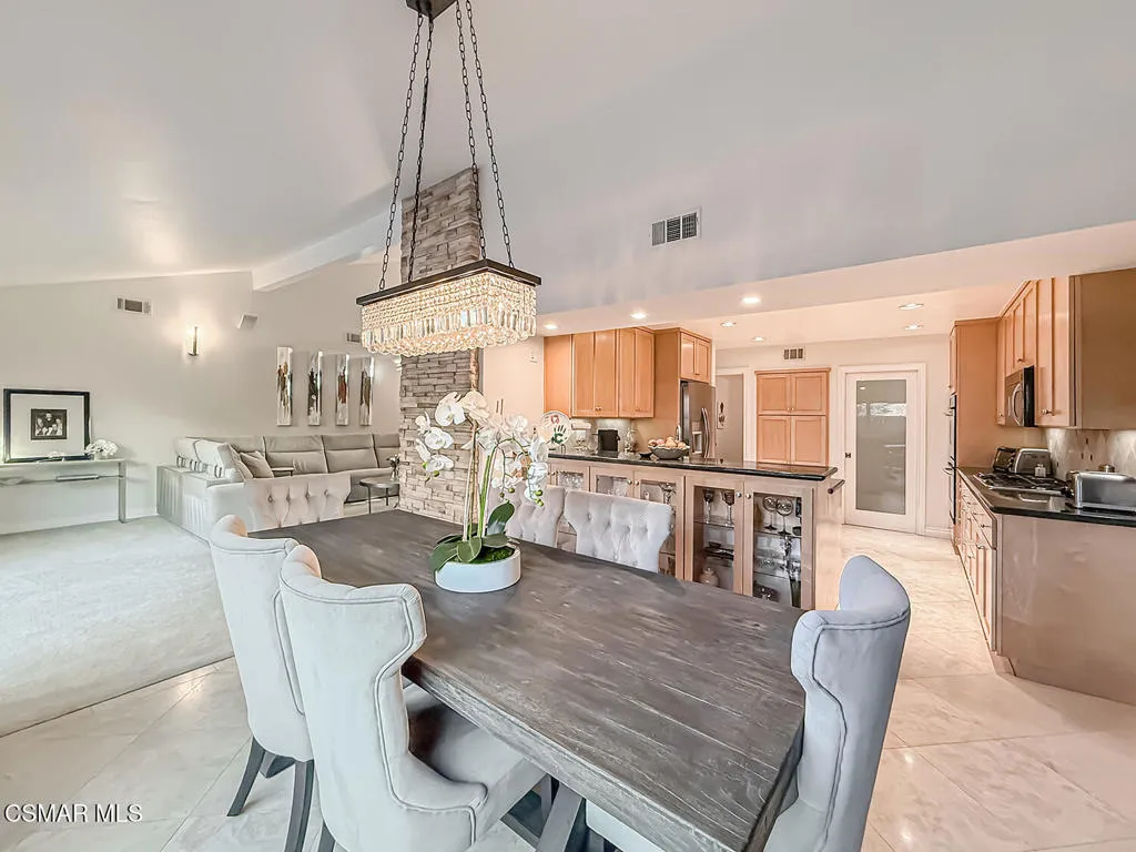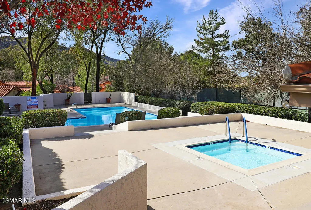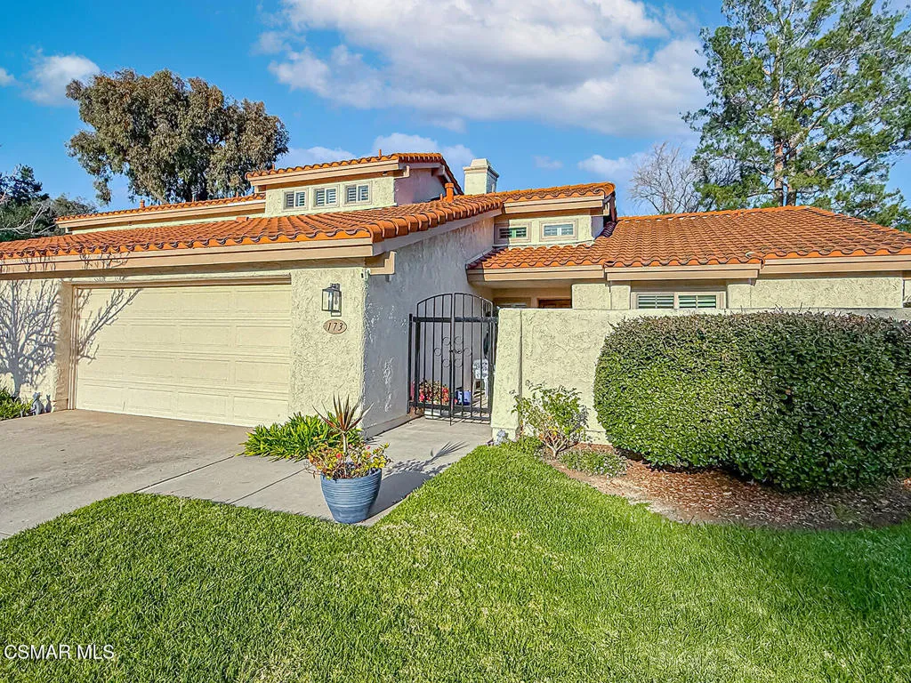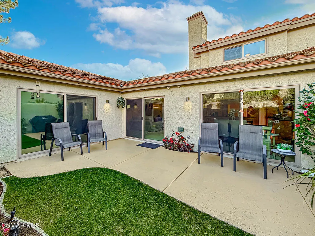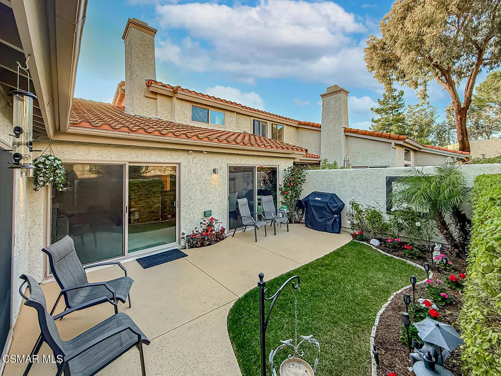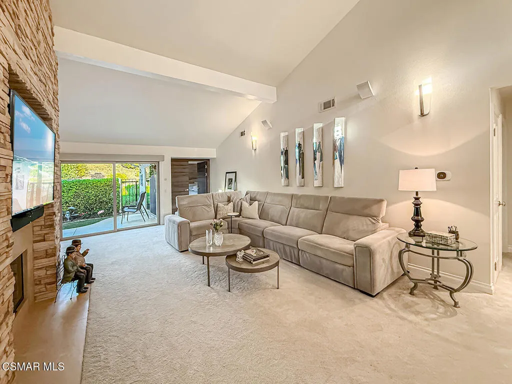 3BR/2.5BA condo in gated Los Robles Estates in Newbury Park. Main-level primary suite + loft. 2-car garage. HOA covers roof/exterior. This attached condominium is located within the gated Los Robles Estates community in Newbury Park and offers 3 bedrooms, 2.5 bathrooms, and approximately 2,148 square feet across two levels. The layout places most daily living on the main floor, with a large open loft upstairs providing flexible additional space.The main level features a vaulted-ceiling living room with a fireplace and sliding doors that open to a private patio, bringing in natural light and extending the living space outdoors. The living room connects directly to the dining area and kitchen, creating a functional and open flow for everyday use. The kitchen offers ample cabinetry, built-in appliances, and convenient access to the dining space.The primary suite is located on the main level and includes double-door entry, a private bath with separate tub and shower, dual vanities, a walk-in closet, and sliding-door access to the patio. Two additional bedrooms, a full bathroom, and a powder room are also on the main floor. An indoor laundry room and direct access to the attached two-car garage add everyday convenience.Upstairs, the open loft overlooks the living area and works well as a bonus room, home office, or secondary living space. The home includes both front and rear patio areas, offering multiple outdoor areas within the unit.The HOA covers the exterior structure and roof. Community amenities include pools, spas, playing courts, and maintained common areas. The air conditioning system is approximately 11 years old, and the home includes a 50-gallon water heater. Monthly HOA dues apply. The location provides convenient access to nearby shopping, dining, and major roadways.