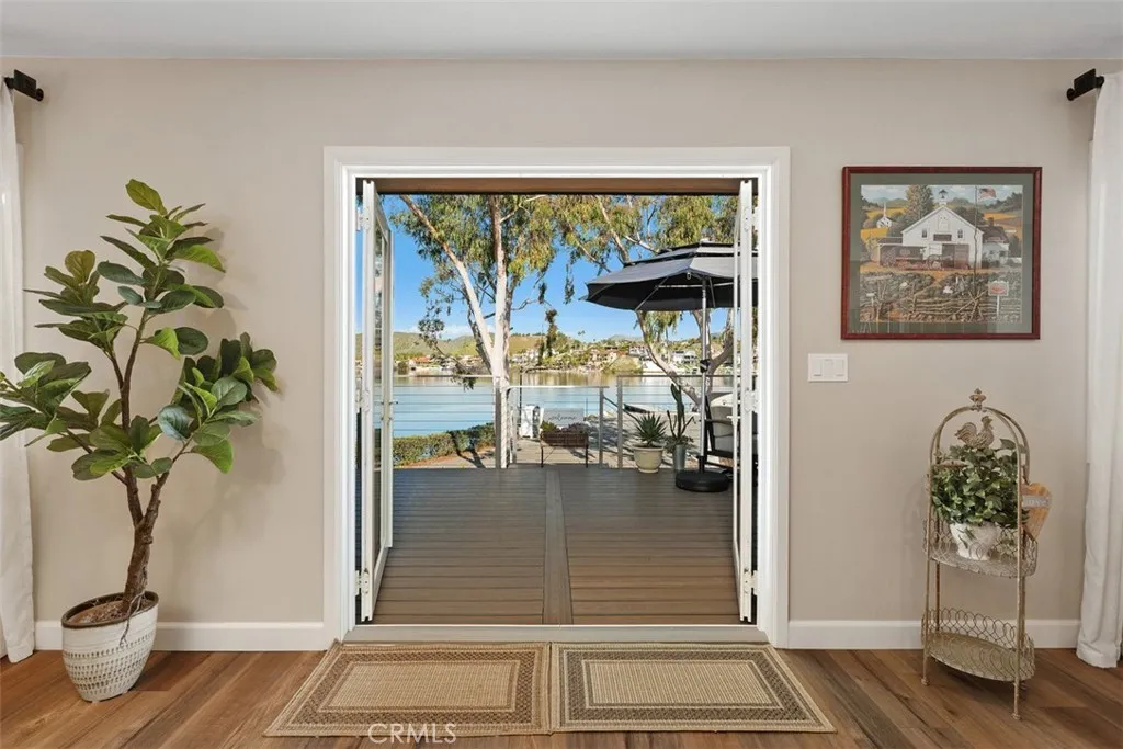 OPPORTUNITY is KNOCKING ON YOUR DOOR! REDUCED to SELL! You have found your DREAM HOME! Welcome to 22344 Whirlaway Ct., Canyon Lake, CA. a Pristine, MOVE-IN-READY Waterfront Retreat! Nestled in one of the most desirable locations in the exclusive gated community of Canyon Lake, this stunning waterfront home offers the ultimate lakeside lifestyle. No detail has been missed on this home which has been fully renovated over the past 2 yrs! Situated on main lake with breathtaking views, this 3-bedroom, 3-bathroom Single Story with spacious open floor plan and abundance of space is designed for comfort, elegance, and entertainment. Key Features: Prime Waterfront Location, direct lake access from your own private dock within a protected cove.This open-concept floor plan is designed to maximize natural light and showcase lake views from multiple vantage points. The family room features LVP flooring (throughout the home), automated window coverings, and a cozy fireplace, for relaxation. Offering 2 Luxurious Primary Bedrooms, both with en suite bathrooms & dual sink vanities plus a separate generous bedroom (currently used as an office). The main primary bedroom is a true retreat, with indulgent tub, a step in shower, two large closets, one is a walk-in. There is a large interior laundry/craft room w/ sink & cabinetry. The Gourmet Kitchen is designed for both functionality and style and features custom shaker cabinets, quartz counters, stainless appliances a professional style Italian range, custom Alder finish pantry, a breakfast bar, and separate dining area off living room. A 2-Car Attached Garage offers ample space for vehicles, storage, or even a home workshop. Step outside to the expansive deck, ideal for alfresco dining, barbecues, and enjoying mesmerizing views over the water and the private bocce/sport court. A truly efficient home offering solar energy, low maintenance landscape with drip system, newer high efficiency doors and windows, newer concrete roof (2023)... the list goes on and on! Please make sure to see the upgrades in the supplement section. This property is truly Un-matchable! As part of the highly sought-after Canyon Lake gated community, enjoy access to a private lake, a clubhouse, a swimming pool, tennis and pickleball courts, an equestrian center, golf course, private restaurant, private campground, and over 12 parks. If you're looking for a full-time residence or weekend retreat, this home offers the perfect blend of luxury & adventure.