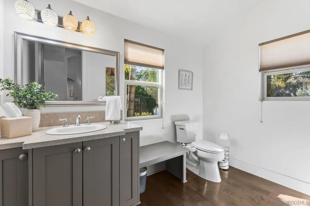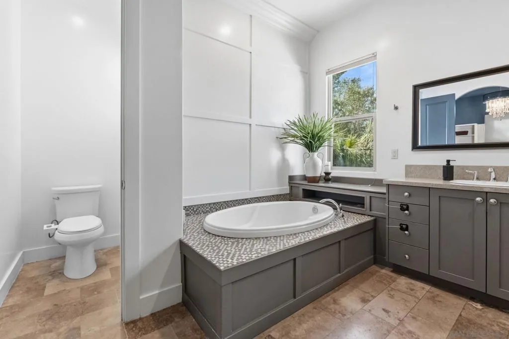 Discover exceptional resort-style living on serene, one-acre corner lot in the prestigious Trails of RB. This custom-built, single-story home—boasting a classic, timeless design—delivers the ultimate in multi-generational versatility and tranquility, featuring a private detached casita (ADU) and a breathtaking backyard oasis perfect for year-round enjoyment. Soaring ceilings, vaulting to 14 feet in the expansive great room, fill the home with abundant natural light and sense of openness that flows seamlessly from living spaces to the heart of the home: the chef’s dream kitchen. Overlooking the pool, this culinary centerpiece is crafted for both daily living and grand entertaining, with oversized island w/ seating, adjacent dining nook, wine refrigerator, and premium Thermador appliances incl a built-in refrigerator, 6-burner range w/ griddle, and double ovens. Formal dining room—currently styled as a sophisticated family game room with ping pong and billiards—offers incredible flexibility for hosting, hobbies, or creative pursuits. Seamless indoor-outdoor living reaches new heights with expansive retractable glass walls that completely open, merging the great room with the outdoor entertaining area into one magnificent, breezy space—ideal for California’s enviable climate. The luxurious primary suite, privately positioned at one end of the home, serves as a true sanctuary with direct access to the backyard and pool for peaceful mornings or serene evenings. The spa-inspired en-suite bath features a deep soaking tub, separate walk-in showers, a built-in vanity area, and an oversized walk-in closet designed for the most discerning wardrobe. Every secondary bedroom is a generous suite with its own private full bath (tub and shower). A separate family room along the secondary wing includes a built-in desk and cabinetry, and the spacious laundry room offers abundant storage. In addition, the residence boasts a dedicated flex space/den, an ideal setting for a home office, workspace, or private gym. Families that enjoy multi-generational living or frequent guests will appreciate the cozy detached casita (ADU), complete with its own bedroom, full bath, and kitchen area—offering privacy and flexibility, and it could also serve as a private workspace. The backyard is a true private oasis: a smart-controlled sparkling pool and spa (solar-heated for energy efficiency), a touch-button convertible patio cover for all-weather use, lush mature landscaping with fruit trees and palms, and room to relax or play. Enhancing sustainability and savings, the home features fully owned (purchased, not leased) solar panels. Practical luxury continues with abundant garage space: a massive attached 3-car garage, complete with an EV-charging station, plus a huge detached stand-alone 2-bay garage perfect for tall vehicles, boats, jet skis, or extra storage. Nestled in the highly regarded Poway Unified School District and just minutes from the I-15 for effortless commuting, this rare offering combines privacy, sophistication, and resort-like amenities in one of North County San Diego’s most coveted neighborhoods. Embrace the lifestyle you’ve been envisioning and experience the timeless elegance and California living that awaits. Be sure to check out the RB Swim & Tennis Club with community pool, playground, tennis, pickleball and MORE...accessible to all residents and included in annual HOA fee.