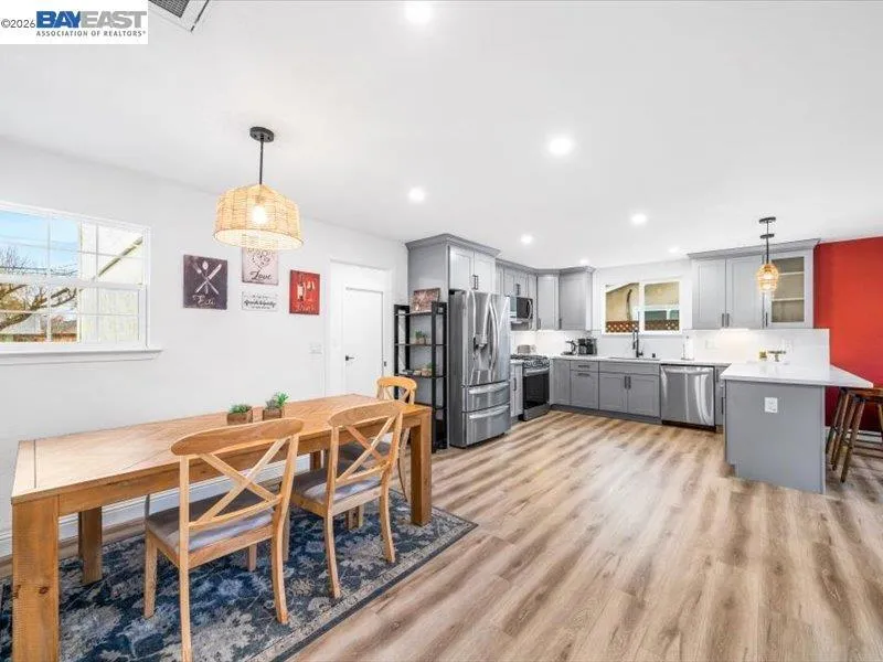 Welcome to 1556 Wagoner Drive, a beautifully renovated, move-in ready home in the desirable Sunset West neighborhood of Livermore. This turnkey 2-story residence features a bright open-concept layout with wide-plank luxury vinyl flooring, recessed lighting, and a striking stone-accent fireplace that anchors the inviting living space. The fully remodeled kitchen is a showstopper with quartz countertops, soft-close cabinetry, stainless steel appliances, designer backsplash, and a spacious breakfast bar—perfect for casual dining and entertaining. The adjacent dining area flows seamlessly for gatherings both large and small. Well-appointed 5 bedrooms offer comfort and flexibility with 3 full bathrooms with contemporary finishes, new cabinets and thoughtful design throughout. With two bedrooms and two full bathrooms on the main level, this thoughtfully designed space is ideal for in-laws, extended family, or visiting guests, offering both comfort and privacy. Conveniently located near top-rated schools, parks, shopping, dining, wineries, and commuter routes, this home offers the perfect blend of style, comfort, and location. Truly turnkey—this Sunset West gem is ready to welcome you home.