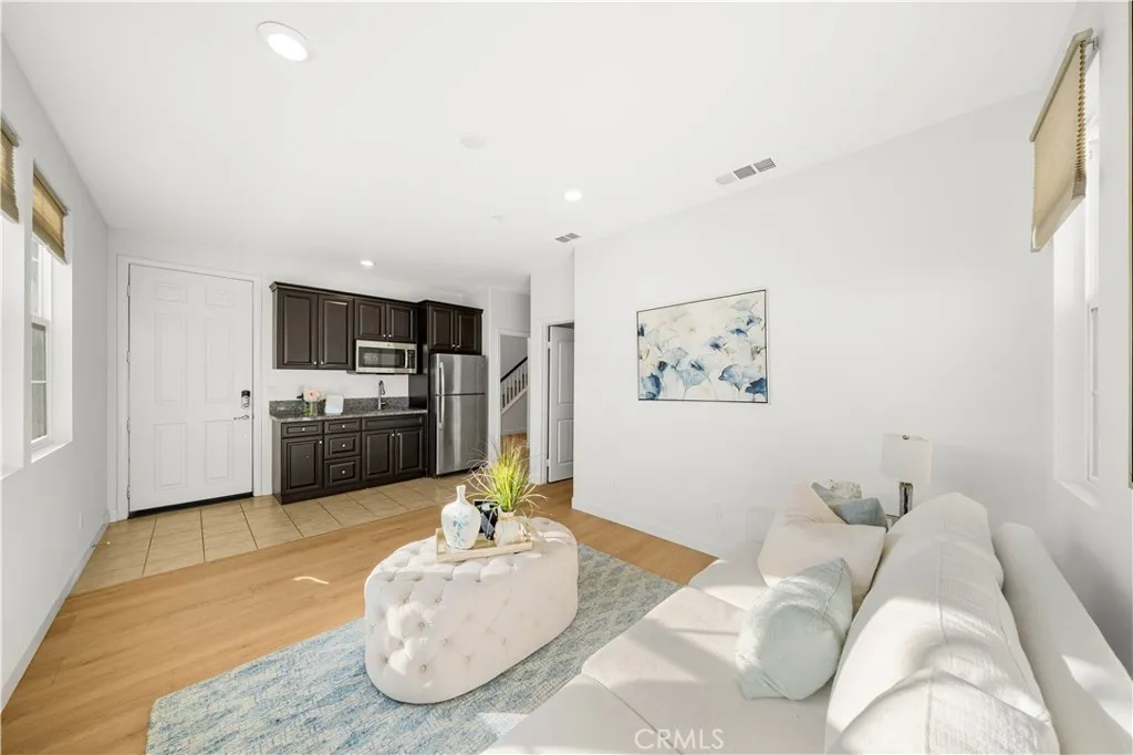 Welcome to 6956 La Rochelle Way in Chino, a rare 2018-built next-generation home that offers an ideal balance of space, functionality, and excellent income potential. This well-maintained residence features 5 bedrooms and 3.5 bathrooms across 3,156 square feet of bright living space on a 4,200-square-foot lot, with a desirable south-facing orientation that provides abundant natural light throughout the home. The interior was just fully upgraded last week with premium 15mm thick laminate flooring throughout, offering superior durability, sound reduction, and a solid underfoot feel, complemented by new modern baseboards for a clean, cohesive finish. A brand-new garage door further enhances both functionality and curb appeal. The home presents in move-in-ready condition. One of the most valuable features of this home is the fully independent attached suite with a private exterior entrance, also separated from the main house by a lockable interior door for complete privacy. The suite includes its own living room, kitchenette, dedicated laundry area, refrigerator, microwave, and a spacious bedroom with a walk-in closet and en-suite bathroom, making it ideal for multi-generational living or rental income of approximately $1,750–$2,000 per month. The backyard is enhanced with mature fruit trees including fig, lemon, orange, tangerine, and guava along with different flowers. Offered at $1,086,000 with approximately 1.3% property tax and a low $134 monthly HOA, this home offers a compelling ownership opportunity, where rental income can significantly reduce the monthly carrying cost compared to many smaller condos.