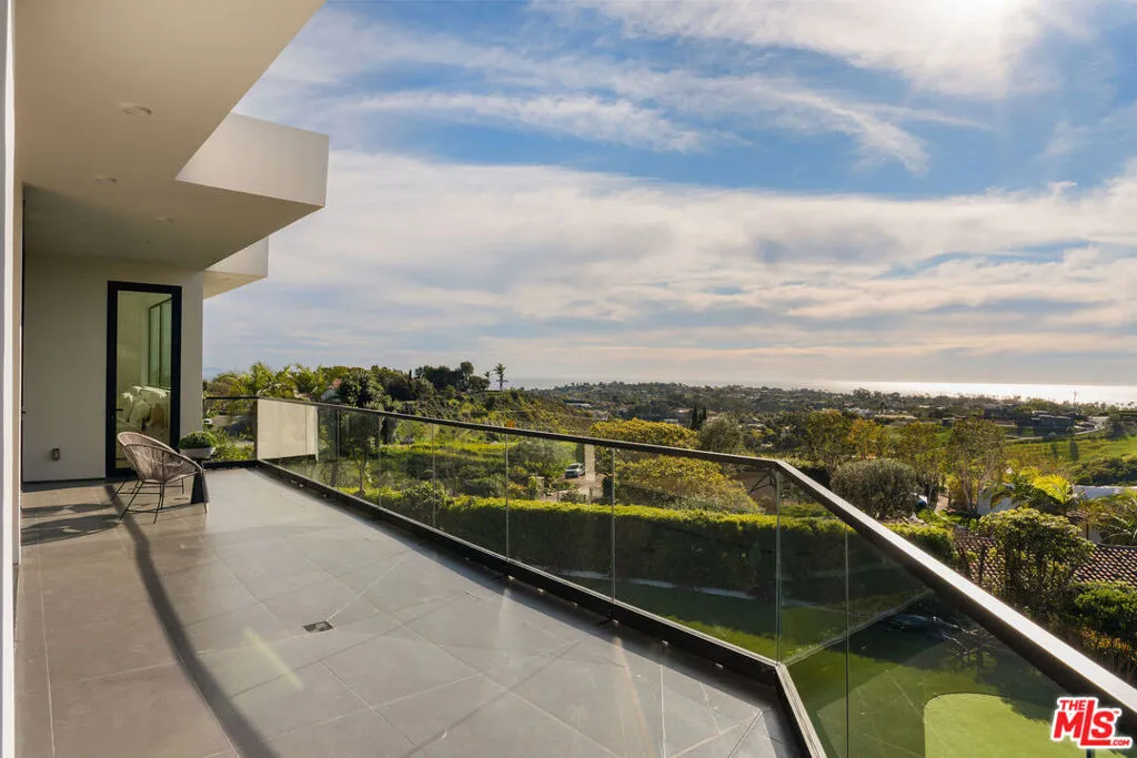 Perched above the coastline with panoramic Pacific Ocean views, this newly constructed organic modern estate sits on over two acres of landscaped grounds including a vineyard near Malibu's Point Dume. At the end of a private cul-de-sac, the estate features almost 9,000 square feet of interior and exterior entertainment space with views of the ocean and Santa Monica Mountains. A gated entrance leads to a circular motor court and elegant architectural approach that immediately establishes the home's scale, privacy, and design pedigree. Inside, soaring 11 foot ceilings and walls of glass in the living and dining spaces are flooded with natural light and dramatic views from nearly every major living space. Expansive open-concept living areas flow effortlessly to more than 3,000 square feet of wraparound ocean-view decks, creating a seamless connection between indoor and outdoor living. The home's material palette reflects thoughtful craftsmanship and a warm modern organic aesthetic where no expense was spared in finishes and materials. Fleetwood windows and doors create clean architectural lines, while custom white oak built-ins, handmade zellige tiles, lime-washed walls, and striking stone surfaces including Taj Mahal quartzite and leathered granite add texture and refinement throughout. The minimalist modern kitchen serves as the centerpiece of the main living area, anchored by a dramatic 12-foot leathered-stone island and equipped with top-of-the-line Miele appliances, PITT gas range built into stone, a generous walk-in pantry, and ample prep space. A wine cellar and dramatic stone clad wine bar make for intimate or large scale entertaining, The residence offers five bedrooms and five bathrooms all ensuite with a highly functional layout, including two bedrooms on the main level ideal for guests, office use, or multigenerational living. Upstairs, the primary suite is designed as a private sanctuary featuring dual closets, a sitting room, and a spa-inspired bathroom clad in Taj Mahal quartzite. Two additional bedrooms and a spacious family room complete the upper level, which is easily accessed via a private elevator connecting both floors. Expansive deck spaces wrap around all bedrooms upstairs and lead to an entertainment deck with an outdoor bar and lounge, capturing both ocean mountain views. Luxury amenities include an indoor-outdoor gym, a a state-of-the-art home theater, a glamorous powder room, and a bonus storage space. The beautiful outdoor spaces feel like a private resort. A sparkling pool and spa overlook the surrounding landscape, complemented by a custom barbecue area, built-in fire pit, and approximately 4,000-square-foot grassy pad with a golf practice area. The vineyard adds a uniquely picturesque element rarely found in Malibu properties; a unique combination of ocean view and Tuscan inspired vistas. Designed with convenience and security in mind, the estate includes a four-car garage, extensive parking for more than ten + vehicles with private side-yard parking suitable for an Airstream, boat, or recreational vehicles. Security includes door bird gates, lutron lights, security cameras, and AV system. This secluded new-construction estate represents a rare opportunity to own a Malibu ocean-view compound with a vineyard, privacy, and architectural integrity all just minutes from Point Dume, Malibu beaches, dining, and shopping.