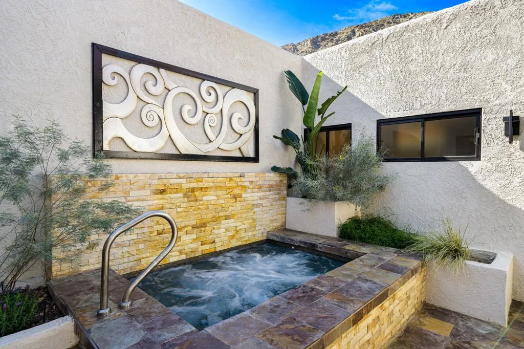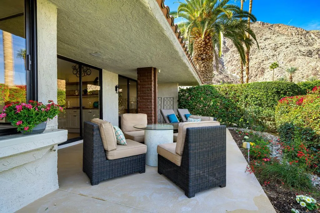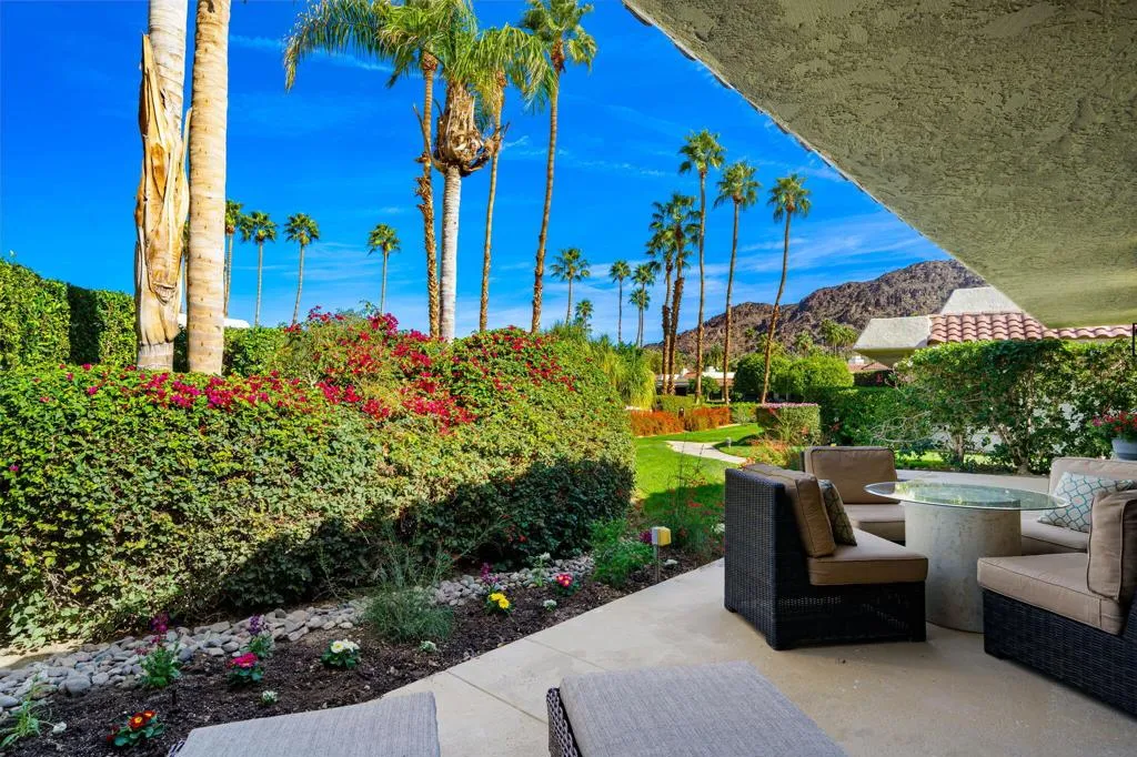 Located within Indian Wells Country Club, this residence offers privacy, mountain views, and access to one of the Coachella Valley's most established country club communities. The home is situated in a 18-residence enclave with exclusive access to a private tennis court and two community swimming pools, just moments from the clubhouse and golf courses.Designed to capture wraparound mountain views, the home is centered around a private, enclosed front courtyard with slate flooring and a raised spa with waterfall feature, offering a resort-style soaking experience. The rear patio opens to lush, manicured landscaping and leads directly to the community pool and tennis court just steps away, creating an easy indoor-outdoor connection.Inside, the home has been extensively updated with a focus on flow, light, and comfort. Living, dining, and kitchen spaces were reimagined into an open-concept layout enhanced by soaring 12-foot ceilings. The living room features a gas fireplace with a dramatic floor-to-ceiling porcelain surround, flanked by custom built-in cabinetry and shelving. The kitchen has been thoughtfully updated with a clean, modern aesthetic designed for everyday living and entertaining.Cohesive flooring, smooth-finished walls and ceilings, recessed lighting, oversized baseboards, ceiling fans, and fresh interior paint create a polished, move-in-ready feel throughout. All three bedrooms are en suite, each offering direct access to either the front courtyard or rear patio. The completely remodeled, spa-inspired primary bath includes marble flooring, a freestanding soaking tub, a double-sink vanity, and calming ambient lighting. Guest and secondary bathrooms have been fully remodeled with designer tile selections, floor-to-ceiling tiled showers, quartz countertops, and updated fixtures.Indian Wells Country Club offers a variety of membership options, ranging from social and fitness memberships to multiple golf levels. Members enjoy access to golf, tennis, fitness facilities, dining, and social events. With mountain views, a private courtyard spa, and the pool and tennis court just steps from the back patio, this move-in-ready home offers an easy, relaxed desert lifestyle ideal for full-time living, a seasonal retreat, or a lock-and-leave getaway.
