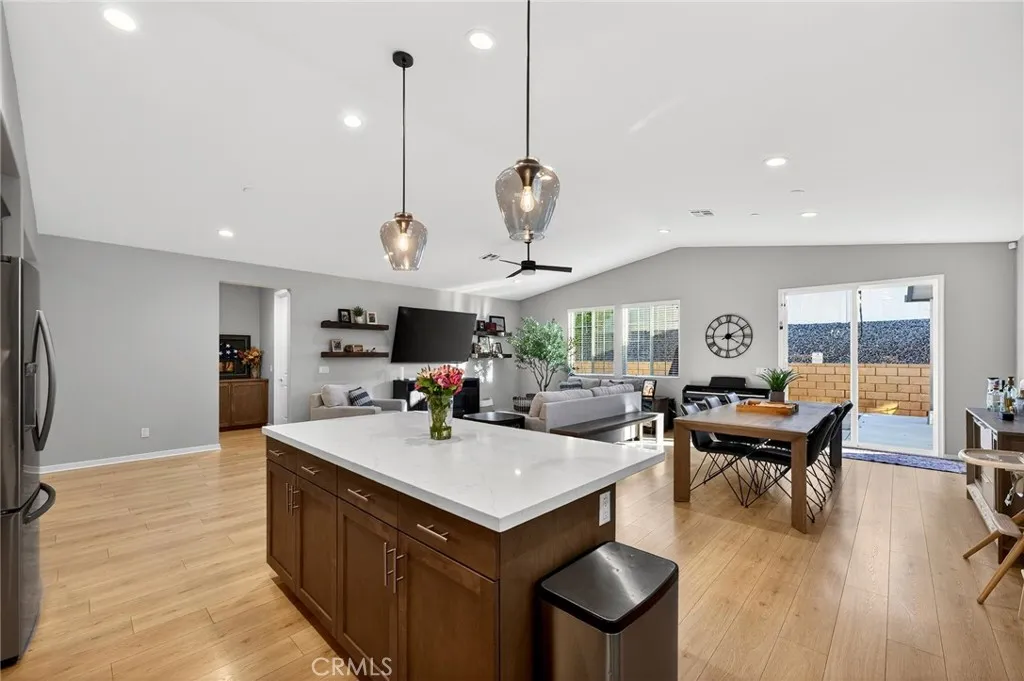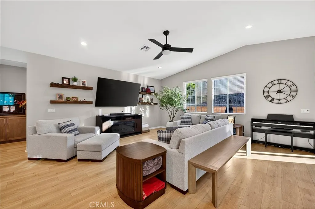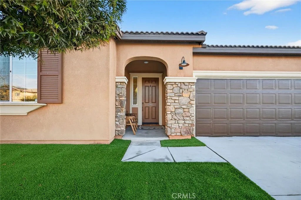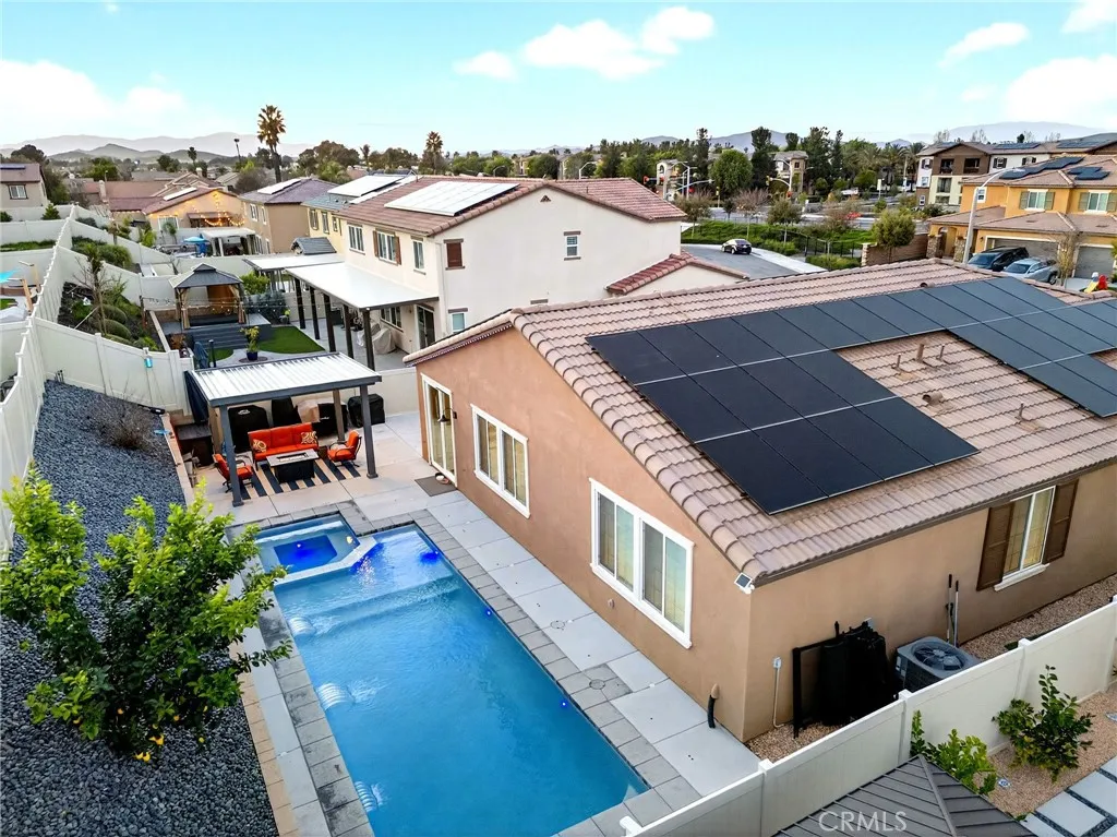 Perfectly upgraded and better than new, this 2022-built single-story pool home is ideally located in the heart of Menifee! Tucked away in a quiet cul-de-sac, this stunning residence offers beautiful curb appeal, a welcoming front porch, solar, and potential RV access! Inside, you’ll find a bright open-concept floor plan with upgraded luxury vinyl plank flooring and spacious Great Room–style living. The thoughtfully designed layout features 4 generously sized bedrooms plus a versatile den or office, offering the flexibility of a potential 5th bedroom—perfect for working from home or creating a private retreat. The chef-inspired kitchen is the heart of the home, showcasing quartz countertops, an oversized island, 5-burner stove, built-in microwave, and elegant wood cabinetry, all seamlessly open to the living and dining areas. The expansive primary suite offers a relaxing escape, complete with a spa-like bathroom featuring dual sinks, a separate soaking tub and shower, and a large walk-in closet. Three additional oversized guest bedrooms provide ample space and storage. Step outside to your private backyard oasis, featuring a newly built modern pool and spa, a built-in patio cover, and low-maintenance landscaping—perfect for entertaining or relaxing year-round. The spacious 2-car garage offers plenty of storage, while solar provides energy efficiency and annual savings. The side yard is large and ready for RV parking or additional storage. Conveniently located near top-rated schools, shopping, dining, and Menifee’s exciting new developments, this home truly has it all. Don’t miss your opportunity to own this exceptional property!