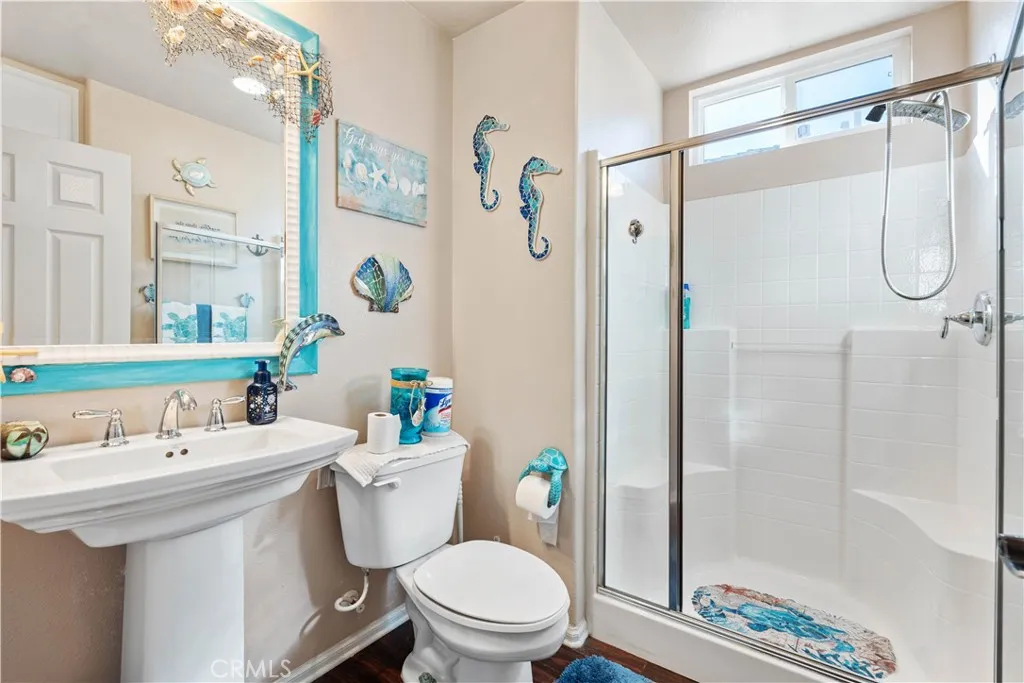 The flexible floor plan offers a downstairs bedroom and full bath, ideal for guests, caregivers, or a home office. Upstairs, the spacious primary suite serves as a peaceful retreat with a walk-in closet and a well-appointed ensuite bathroom, along with two additional bedrooms and a full bath — a rare and highly desirable layout within a 55+ community.
