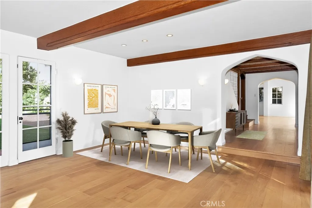 Welcome to a truly special residence that blends architectural charm, modern comfort, and an unbeatable location. If you are looking for plenty of space, inside and out, this is it! This expansive 3,099 sq ft two-story English-cottage style home sits on an oversized 11,137 sq ft lot—approximately a lot and a half compared to most homes on the street—offering exceptional space, privacy, and outdoor living rarely found in this area. This park-like backyard has been the site of many birthday parties and celebrations over the years! The home is reputed to have been designed by renowned architect Paul Williams and is located within a Historic Preservation Zone, adding timeless character and prestige. Inside, the home is bright, airy, and turnkey, featuring 4 bedrooms and 3.5 bathrooms with an ideal layout for both everyday living and entertaining. You will love the open kitchen featuring a huge center island, high-end appliances plenty of counter space and a breakfast nook. The kitchen overflows into a comfortable family room for after dinner TV, morning coffee or Sunday paper. A downstairs bedroom with ensuite bath and direct outdoor access offers flexibility for guests, in-laws, or a private office. The formal living room showcases wood-beamed ceilings, a decorative fireplace, French doors, and a wall of paned glass opening to the backyard. Nearly every main-level room connects to the outdoors, creating seamless indoor/outdoor California living. Upstairs, the primary suite features two walk-in closets, an additional storage closet, a decorative fireplace nook, and a large ensuite bathroom. Two oversized secondary bedrooms share a Jack-and-Jill bathroom, including one with a bonus office/playroom wrapped in windows on three sides. Throughout the home, you’ll find beautiful natural light, lovely views, and extensive storage, plus a gated detached two-car garage. The location is extraordinary—just east of Beverly Hills and moments from cultural landmarks like LACMA, Petersen Automotive Museum, The Grove, The Farmer's Market and the Academy Museum of Motion Pictures. World-class shopping and dining are nearby. There are countless restaurants and entertainment options. A new Metro subway station just a few blocks away further enhances connectivity across Los Angeles. Space, architectural pedigree, walkability, and modern upgrades—this is a rare leasing opportunity in one of the city’s most desirable historic neighborhoods. (Some photos have been virtually staged.)