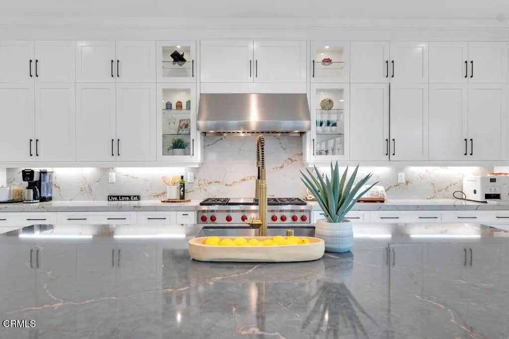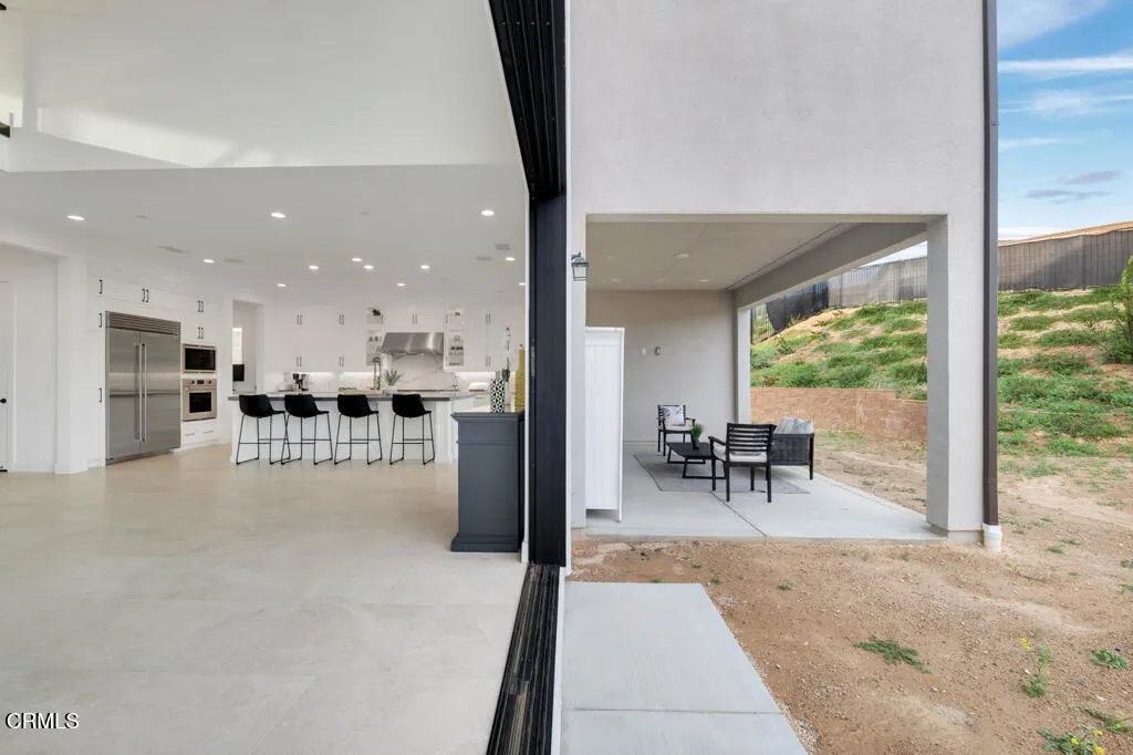 Located in The Ridge at Bella Vista, this stunning home captures the essence of modern California living and makes an unforgettable first impression. From the moment you step through the covered entry and double doors, the home exudes luxury and is filled with natural light, soaring ceilings, and architectural drama that immediately set the tone.Understandably, the Idylwild is the most sought after floorplan with striking dual floating staircases and glass handrails that anchor the dramatic two-story foyer, while expansive, high-end glass wall systems flood the living spaces with warm light and open seamlessly to the outdoors, creating true indoor-outdoor living. The gourmet kitchen is a showpiece, seamlessly blending stunning design with exceptional functionality. Anchored by a large center island with gorgeous upgraded Cosentino quartz countertops and breakfast bar, it features upper cabinetry, a butler's pantry, a 48-inch Wolf professional range, and a Sub-Zero built-in refrigerator--an absolute chef's dream. Flowing effortlessly from the kitchen, the expansive dining space and great room balance sophistication and comfort with a sleek designer fireplace and an upgraded home-theater system with surround sound.The primary suite is a true retreat, thoughtfully upgraded with the coveted owner's retreat option, a spacious walk-in closet, and a spa-inspired bath with dual vanities, a soaking tub, and an oversized deluxe shower. Secondary bedrooms are equally well appointed, each with en-suite bathrooms featuring upgraded finishes for style, comfort, and privacy.Additional highlights include a versatile flex space off the foyer, a desirable first-floor bedroom suite with private bath, a drop zone, centrally located laundry, generous storage, and an additional upstairs family room. Throughout the home, thoughtful upgrades and smart-home enhancements add both comfort and convenience, while added features such as a built-in security system, premium interior insulation, a carefully selected lighting package, and solar further elevate the property. All of this is set on a spacious, private lot with sunrise views and distance from neighbors within one of Porter Ranch's most coveted neighborhoods.Conveniently located near award-winning schools, a newly developed 50-acre community park, and The Vineyards shopping destination, which offers an upscale, boutique-style mix of restaurants, cafes, and specialty grocery stores.