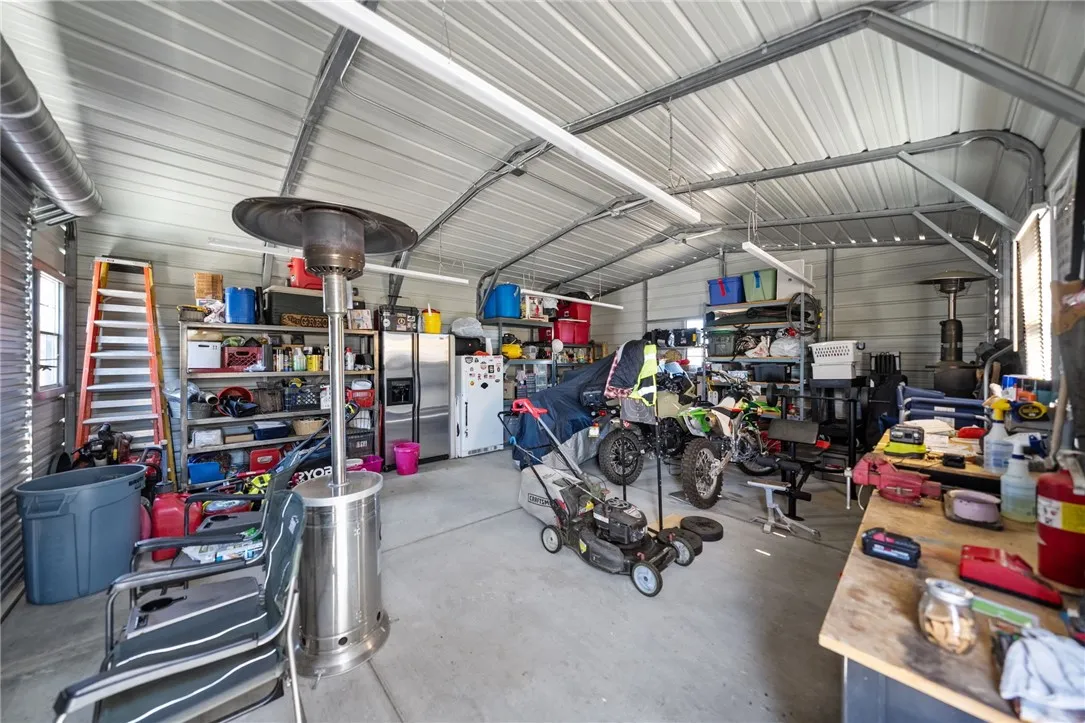 SO MANY UPGRADES YOU NEED TO READ TO THE VERY END!! This Oakridge Ranches home is beautifully upgraded and delivers the serenity of rural living without sacrificing modern comforts. Whether you're dreaming of a horse property, a hobby farm, or just some wide-open space to breathe, this Oakridge Ranches retreat has the freedom you’ve been craving. Behind the gated entry, a charming front porch invites you to slow down and savor your morning coffee in the quiet stillness of nature. Inside, the open-concept layout makes the most of the view, with high-end laminate flooring, crown molding, and a spacious great room that spills effortlessly into the gourmet kitchen. Here, you'll find granite countertops, upgraded cabinetry, a coffered ceiling, stainless steel appliances, built-in trash storage, and plenty of cupboard space. The primary suite is privately tucked at the back of the home and feels like a true escape with its large soaking tub, walk-in shower, dual vanities, coffered ceiling, and walk-in closet. Two additional bedrooms and a full guest bath (with an unused shower!) provide comfortable accommodations for guests and family. Outside is where this property really shines. A massive 47' x 15' aluminum patio cover with recessed lighting and outlets covers a 60' x 15' concrete patio—ideal for outdoor living. You’ll also find a 20' x 24' metal garage/workshop, a 9' x 15' storage shed on a concrete RV pad (with dump station), sidewalks that wrap the entire home, two cargo containers (40' and 20'), and three 10-foot access gates enclosing the fully fenced quarter-acre yard. The property also boasts a permanent foundation (concrete slab with 40” crawl space and drainage), an upgraded 200-amp electrical panel, and an emergency backup generator system that powers everything but the A/C and well. A 3-stage water filtration system with 20” x 4” filters is located under the home, with a 2-inch water line running from the well to the rear yard. The water system is robust, with a remarkable 150-gallon-per-minute well, a 5,000-gallon water tank, and an additional 1,500-gallon poly tank for backup. A 1,200-gallon concrete septic tank also serves the home. And, if you're looking to expand, there is a separate 120’ x 70’ graded pad is ready for horses, animals, or your next big idea. This home is a lifestyle...one with sunsets, starry skies, and space to grow.