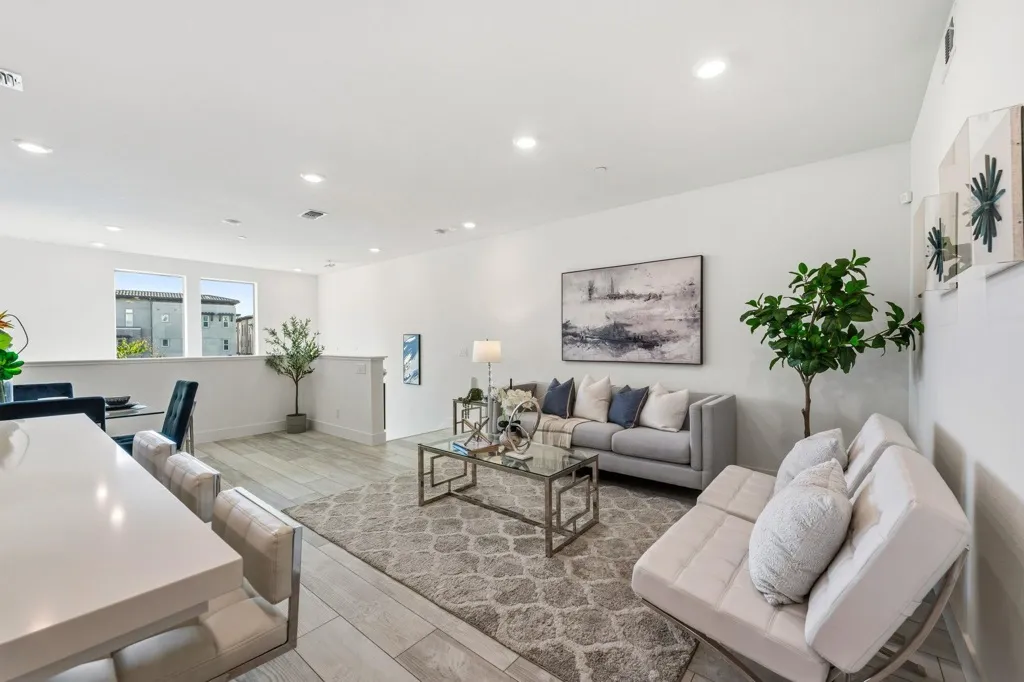 Welcome to this stunning east-facing, 2-story townhouse-style condo in Dublin’s highly desirable Boulevard community! Built in 2022, this 3-bedroom, 3-bath home offers ~1,563 sq. ft. of modern elegance and smart design. Step inside to soaring entry ceilings, contemporary flooring, and a convenient first-floor en-suite bedroom—perfect for guests or a home office. The bright, open-concept upper level features a spacious living and dining area flowing seamlessly into a chef-inspired kitchen with quartz countertops, white shaker cabinets, soft-close drawers, stainless steel appliances, and a gas range. Retreat to the tranquil primary suite with a walk-in closet and spa-like bath showcasing dual sinks and an oversized shower. Enjoy your private balcony, 2-car tandem garage, and premium upgrades. Ideally located near BART, top-rated schools, Persimmon Shopping center that includes restaurants, Whole Foods Market, and Don Biddle Community Park. With full access to the Boulevard Recreation Center’s heated pool, fitness areas, and club facilities—this home truly embodies luxury, comfort, and convenience in one of Dublin’s premier neighborhoods.