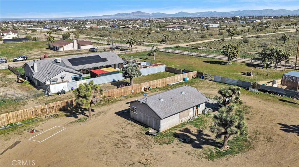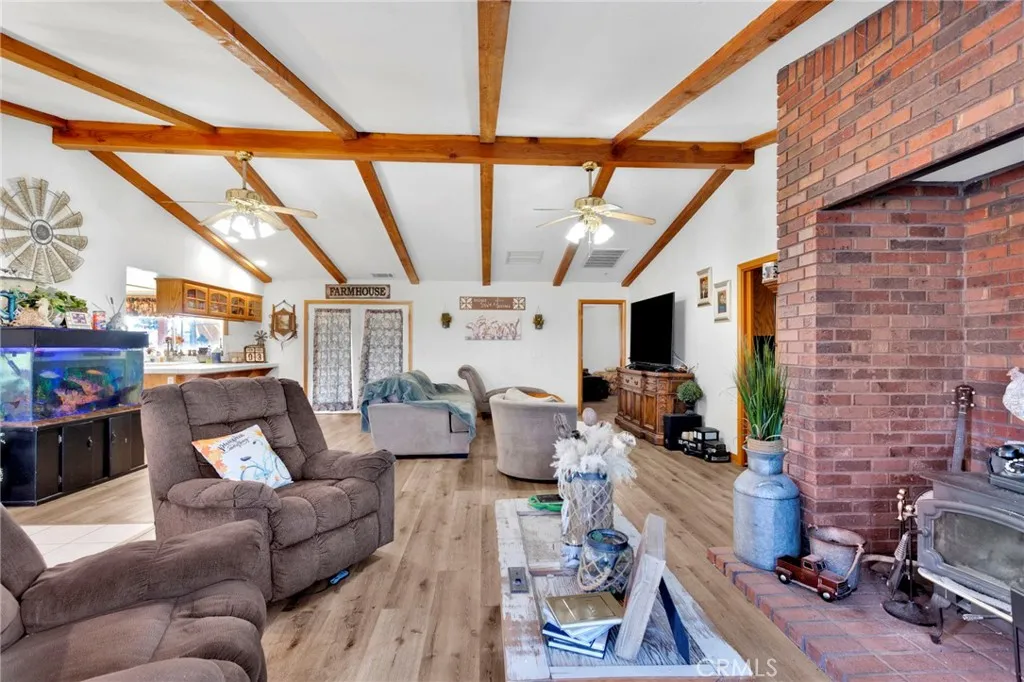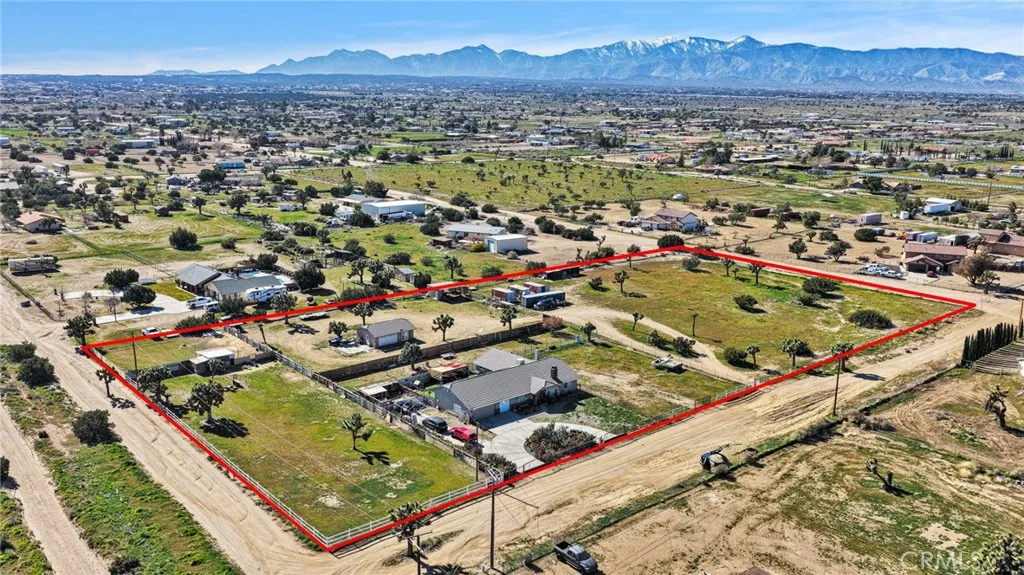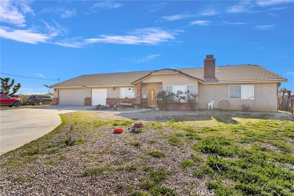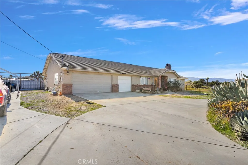 4 Acres Corner Lot in Oak Hills!! This 3-bedroom 2.5 home is a hidden desert gem. Pull up to the nice wrought iron gate. There is a Circular driveway, 3-car garage. A separate garage that has been converted into a living space. Walk into the Living Room with a vaulted wood beam ceiling, which features a wood-burning stove. The Kitchen has plenty of cabinet space and a pantry. The dining area has a bay window that opens onto the backyard. The master bedroom has a walk-in closet, a fireplace, and access to the enclosed patio area. The master bath has a jetted tub and a separate shower, plus a built-in vanity with double sinks. The home offers 2 additional good-sized bedrooms and a full-size bathroom with double sinks. There is also a Bonus room with French Doors. Indoor laundry room with a sink. Plus a half bath for guests. The backyard has a patio and bar area. Plenty of space to have horses and animals. This property has so many possibilities with the land.