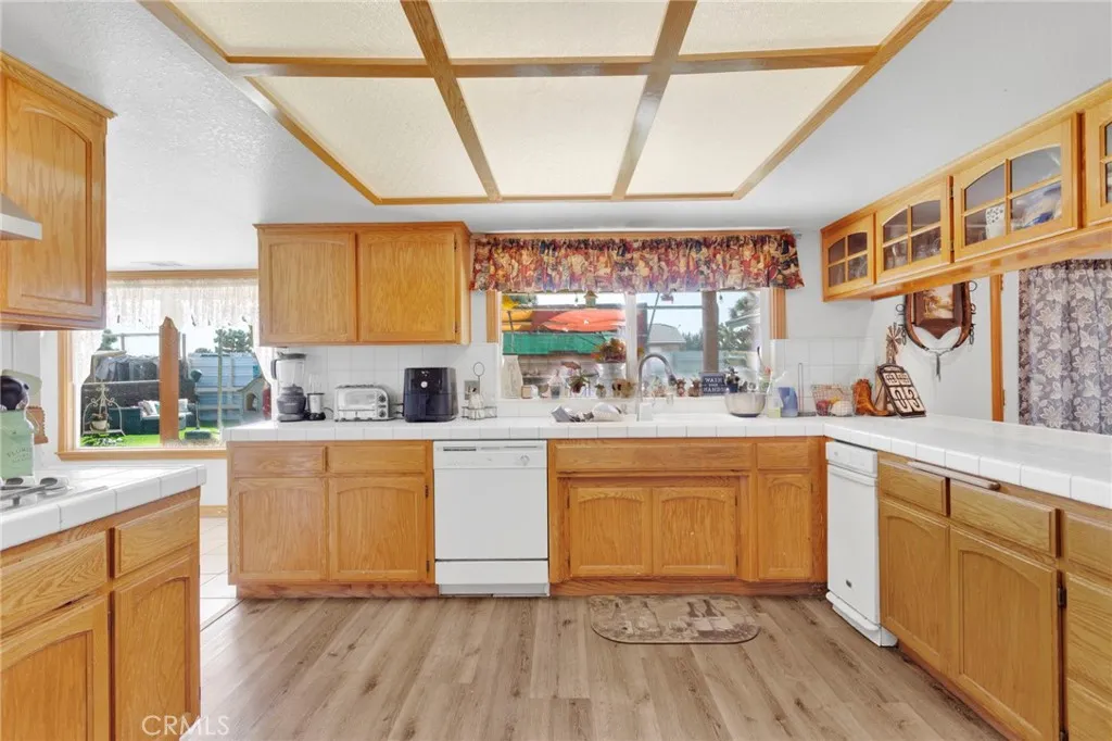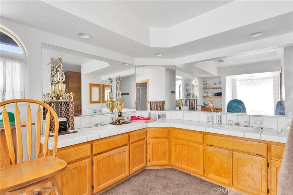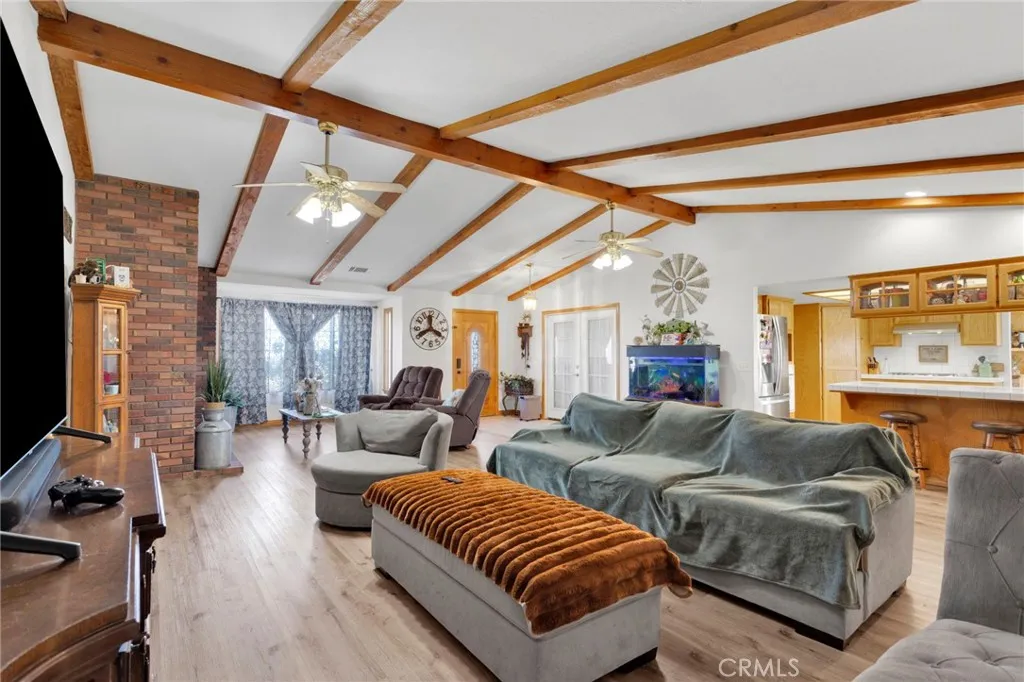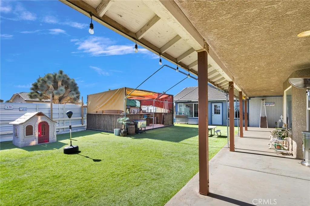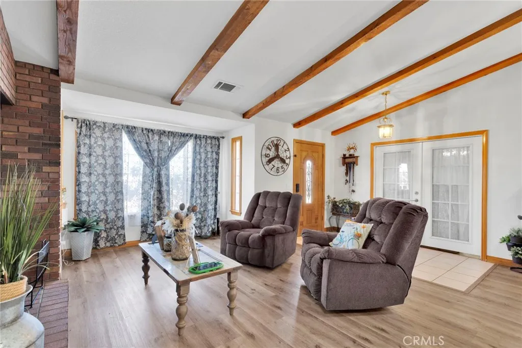 4 Acres Corner Lot in Oak Hills!! This 3-bedroom 2.5 home is a hidden desert gem. Pull up to the nice wrought iron gate. There is a Circular driveway, 3-car garage. A separate garage that has been converted into a living space. Walk into the Living Room with a vaulted wood beam ceiling, which features a wood-burning stove. The Kitchen has plenty of cabinet space and a pantry. The dining area has a bay window that opens onto the backyard. The master bedroom has a walk-in closet, a fireplace, and access to the enclosed patio area. The master bath has a jetted tub and a separate shower, plus a built-in vanity with double sinks. The home offers 2 additional good-sized bedrooms and a full-size bathroom with double sinks. There is also a Bonus room with French Doors. Indoor laundry room with a sink. Plus a half bath for guests. The backyard has a patio and bar area. Plenty of space to have horses and animals. This property has so many possibilities with the land.