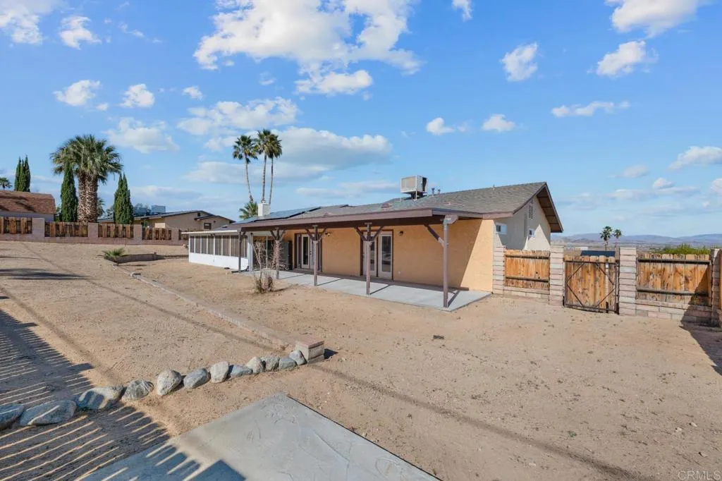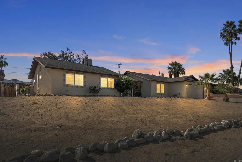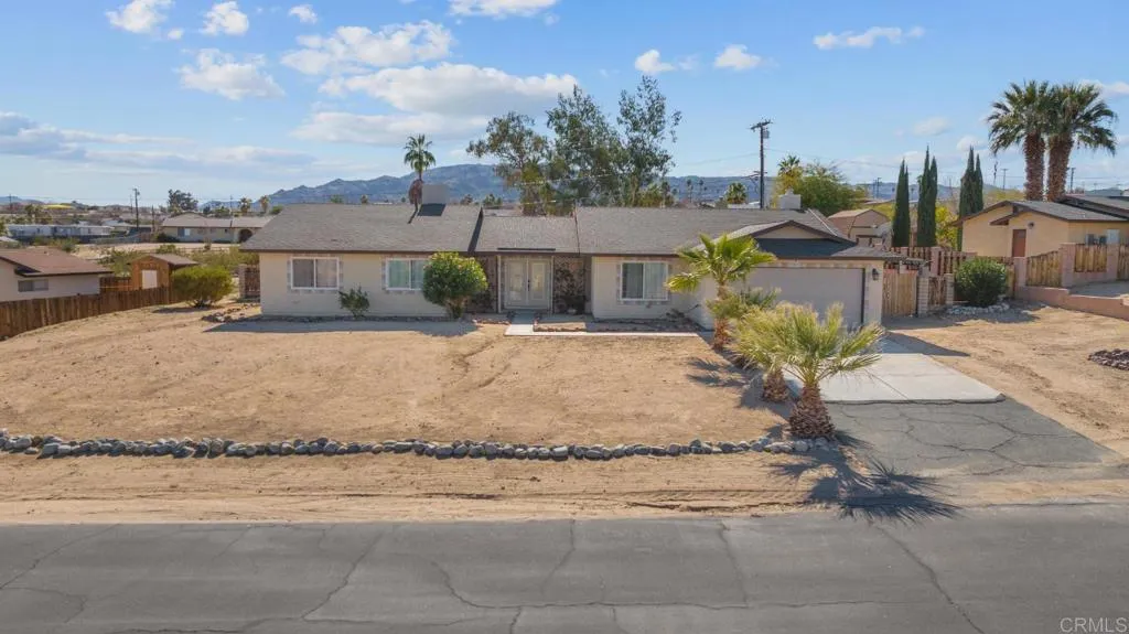 Located less than 10 minutes from Joshua Tree National Park, this well-maintained 3-bedroom, 2-bath home places you right in the heart of one of Southern California’s most sought-after desert destinations. With millions visiting the park each year for hiking, climbing, and unforgettable dark-sky stargazing, the location offers incredible appeal for those seeking a desert escape. Inside, the inviting fireplace creates a cozy gathering space, while the screened-in porch is perfect for relaxing evenings under the desert sky. The functional layout offers comfortable living and welcoming spaces that guests and homeowners alike will appreciate. Very low-maintenance landscaping and solar provide efficiency and ease, making the property simple to manage and enjoy. Whether you're looking for a full-time home, seasonal retreat, or a property that benefits from the area’s steady stream of visitors, this home offers a fantastic opportunity to experience quintessential desert living just minutes from the park.