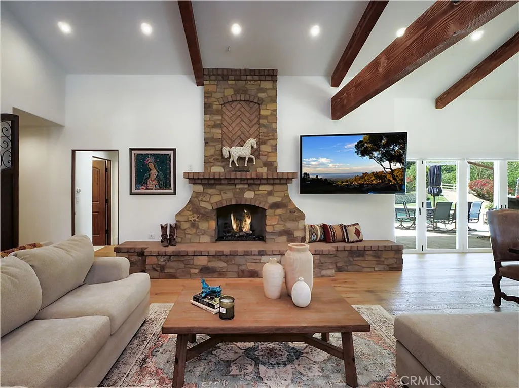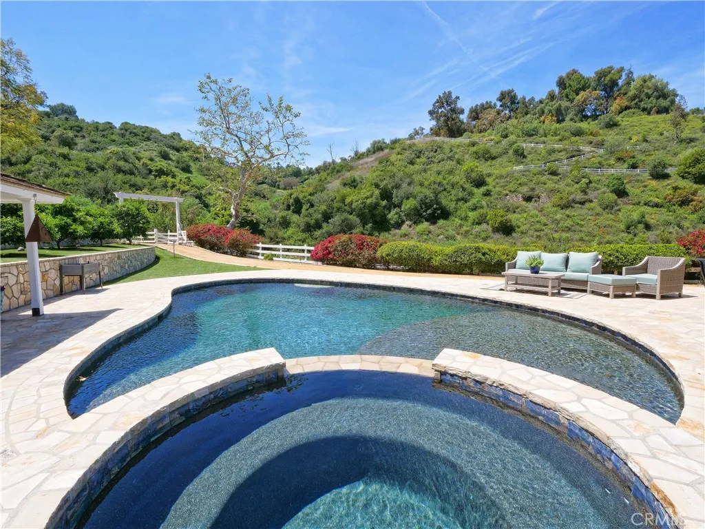 Set on approximately 2.7 acres in the exclusive, gated community of Rolling Hills, this exceptional equestrian estate blends refined living with the serenity of the countryside. Beautifully renovated in 2023, the approximately 3,833 sq. ft. main residence offers 3 bedrooms and 3.5 bathrooms. The expansive great room showcases soaring wood-beamed ceilings, beautiful oak flooring, and a dramatic stacked-stone fireplace, opening seamlessly to the gourmet kitchen appointed with Viking and Sub-Zero appliances and an impressive 10-foot island. An oversized multipurpose room functions beautifully as a second family room or game room and offers flexibility as a potential additional bedroom. Outdoors, unwind by the resort-style pool with Baja shelf and spa, complemented by a convenient pool house with bathroom, shower, and dressing area. A secluded approximately 800 sq. ft. Guest House features one bedroom and bath, a living room with fireplace, kitchenette, and sweeping countryside views, which is ideal for guests, extended stays or the perfect home office. Equestrian amenities include a three-stall barn with tack room and hot walker, with easy access to miles of riding trails and the nearby riding ring. An oversized stamped-concrete driveway provides effortless access to the three-car garage. Additional highlights include air conditioning, backup generators, collapsible doors, four fireplaces, and the rare, tranquil feeling of country living just moments from everything the Peninsula has to offer.