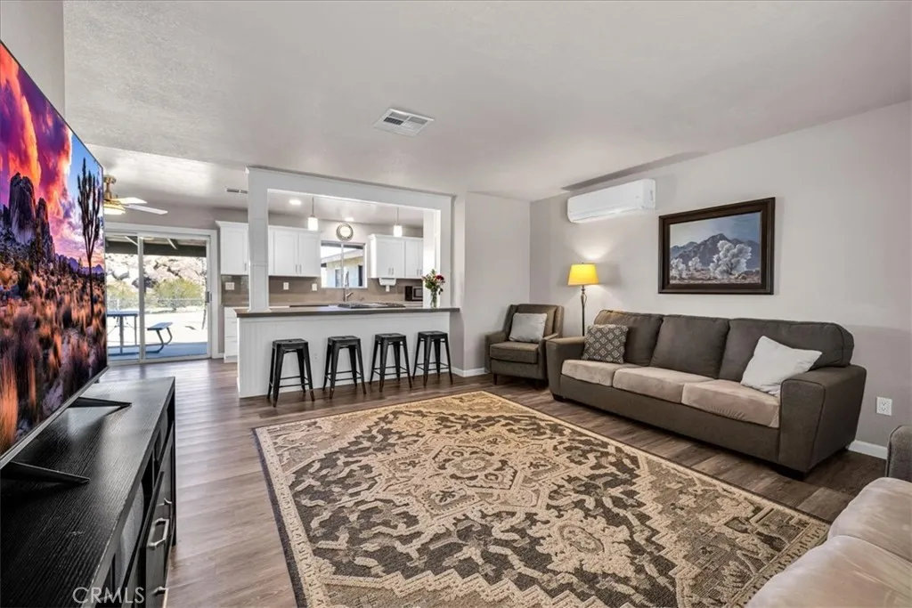 Set in Joshua Tree’s Panorama Heights, this 3-bedroom, 2-bath home sits on over an acre of dramatic high-desert terrain, surrounded by striking natural boulder formations that define the property and give it a true sense of place. The landscape here isn’t a backdrop—it’s the experience. Massive rock outcroppings frame outdoor living areas, create natural privacy, and offer endless spots to gather, reflect, or simply take in the quiet. Inside, the home is 1,107 square feet with a comfortable, functional layout that opens easily to the outdoors. The living, dining, and kitchen spaces connect seamlessly, with clean finishes and an easy flow that works well for everyday living or hosting friends. Large windows bring the desert light inside and keep the boulder views front and center. Bedrooms are thoughtfully placed, offering flexibility for guests, creative space, or a home office. Outside is where this property truly shines. Multiple areas invite you to sit among the rocks, whether it’s around the fire pit, in the hot tub, on the covered patio, or tucked into a natural stone alcove. The scale of the lot allows room to wander, explore, and shape the land over time—without losing the raw beauty that makes Panorama Heights so special. RV drive in gates, RV hookups and dump, covered boat parking, and a workshop that can be easily converted to a casita. Located just minutes from Joshua Tree National Park, local restaurants, galleries, and music events, this home offers a balance of privacy and access. A rare boulder property with presence, personality, and a setting that simply can’t be replicated.