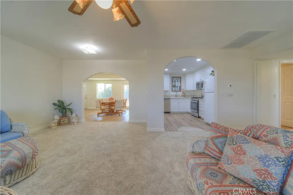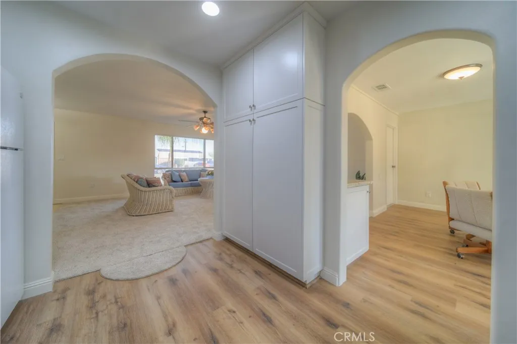 TURNKEY! BEAUTIFULLY REMODELED SINGLE-STORY IN DESIRABLE 55+ COMMUNITY “Flexible Dual-Suite Living” (Positive & Smart) Spacious 3-Bedroom, 2-Bath Home with Flexible Dual-Suite Layout. This well-maintained home offers updated windows, flooring and interior paint, a rare and versatile floor plan perfect for today’s lifestyle needs. The oversized Primary Bedroom with adjoining bedroom directly shared a full bath. Creating an ideal PRIVATE SUITE with bonus sitting room, office, or for Couples who prefer SEPARATE SLEEPING SPACES. Add a hallway door to create a completely separate 2-bedroom, 1-bath PRIVATE WING! A third bedroom on the opposite side of the home provides excellent separation includes a washbasin and wall closed perfect for guests, hobbies, or a In-home CAREGIVER arrangements. one smart layout, with no interior steps and a light-filled open floor plan, home offers comfort a spacious front living and dining room showcases elegant arched entryways, while the separate family room–dining area features French doors that open up to the backyard.“Updated Kitchen” Beautifully remodeled with long-term comfort in mind, featuring white soft-close cabinetry, double-door wall pantry, granite countertops, updated sink and faucet, recessed lighting, and newer appliances including gas range, microwave, and dishwasher. “Updated Bathrooms” Both bathrooms have been tastefully remodeled with newer cabinetry, granite countertops, updated sinks and faucets, modern shower and tub enclosures, and newer toilets. One bathroom features a low step-in shower for ease of access. “Major System Upgrades for Peace of Mind Per Seller Newer Roof and Vents, upgraded Lennox HVAC system, 200-amp electrical panel, 40-gallon water heater, upgraded sewer line, remodeled bathroom/laundry room, and upgraded garage exterior wall. “Outdoor Living Enjoy a large, fully fenced backyard with covered front and rear patios, attractive hardscaping, drip irrigation system, plenty of room for gardening, and storage room. Additional highlights include indoor laundry with gas or electric dryer options, spacious two-car garage with roll-up door, and a flat driveway. Residents enjoy access to the amenities of the Sun City Civic Association including pools, fitness center, clubs, and social activities featuring LOW HOA dues and LOW taxes. Located near shopping centers, banks, medical offices, hospitals, and with easy access to the 215 freeway. Move in and start enjoying the lifestyle you’ve earned.
