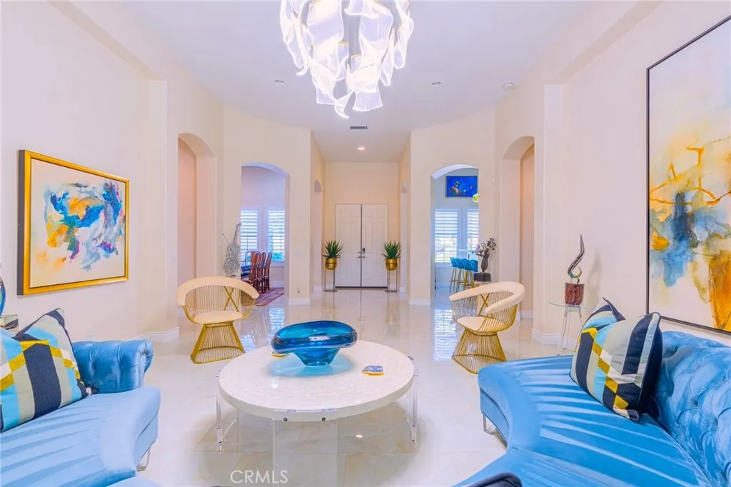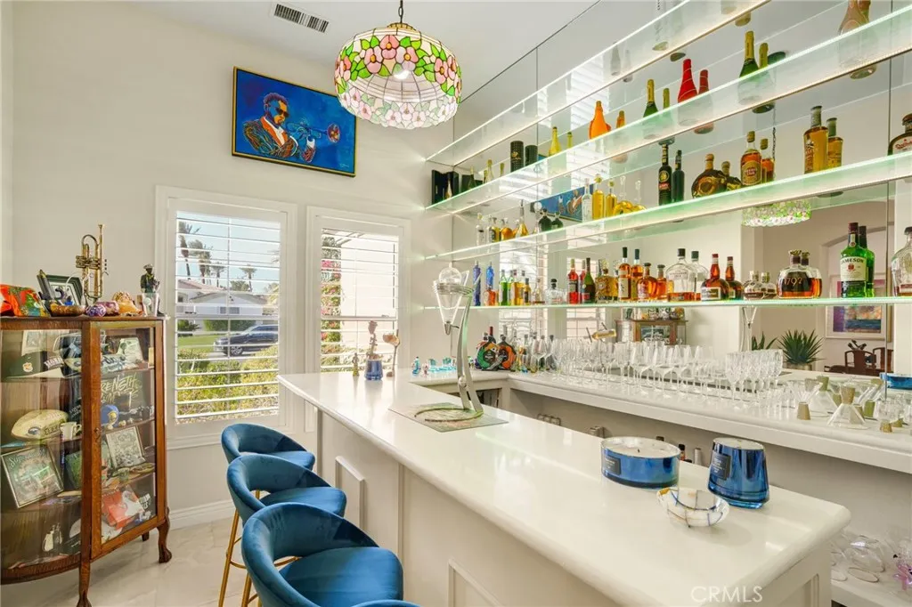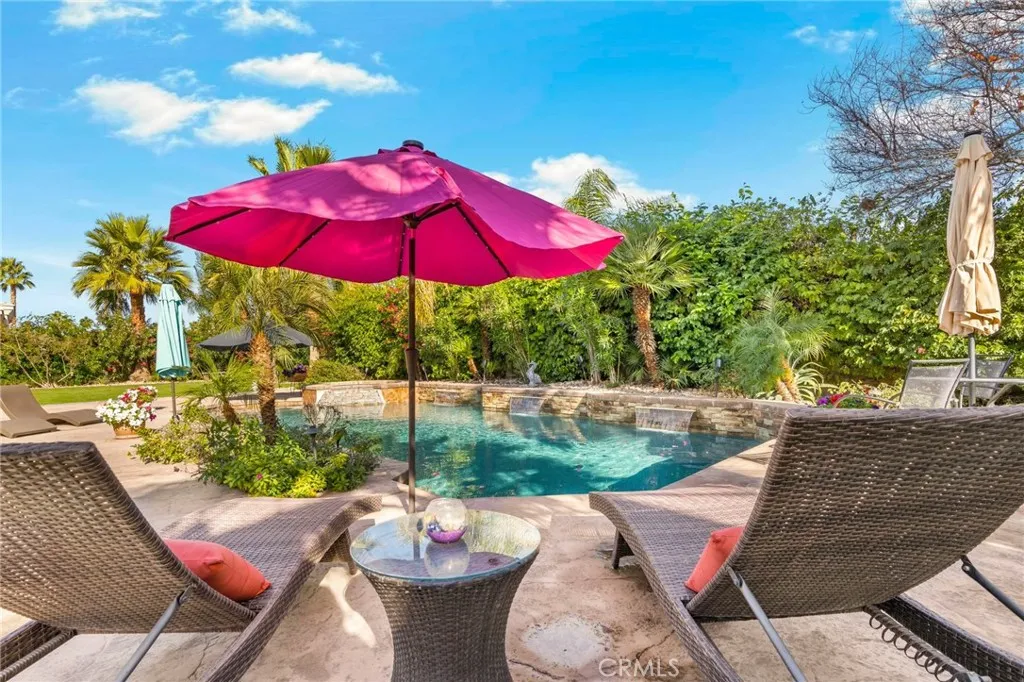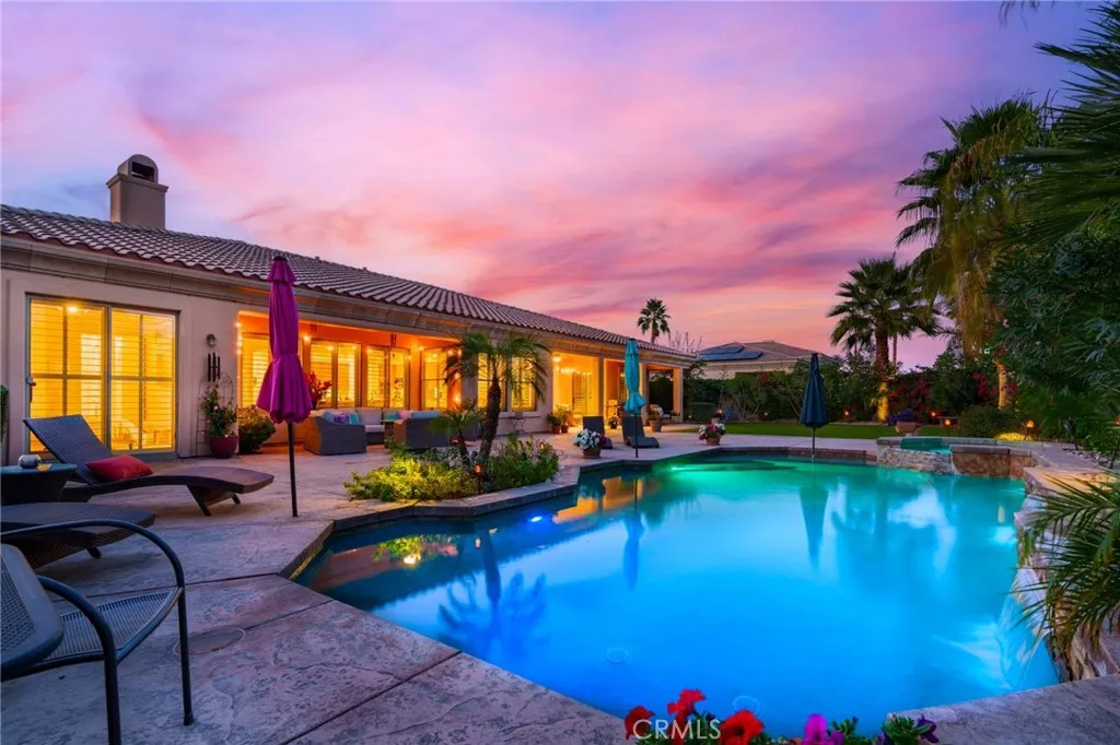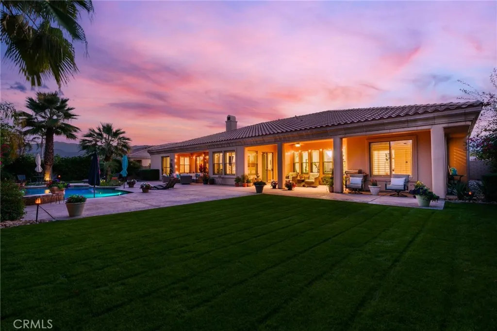 NEW PRICE plus offered furnished with a brand new fridge! Enjoy the largest plan in the community and the best of this East facing home in La Terraza Palacio. Custom built bar, four ensuite bedrooms with private entrances off of two, and immaculate landscaping. Primary is located in its own wing and offers a private entrance, seating area, and custom fireplace. Plus dual vanities, a custom designed walk-in closet, walk-in shower, and soaking tub. The grand foyer sets an elegant tone with a statement chandelier, formal dining room, and an entertainer's bar. Chef’s kitchen anchors the home and opens to the main living, dining areas, and three guest rooms. The resort-style backyard features a private pool and spa, spacious lounge areas, and manicured landscaping. Close proximity to world-class golf courses, premier medical facilities, El Paseo shopping, and everything that makes Rancho Mirage a place of distinction.