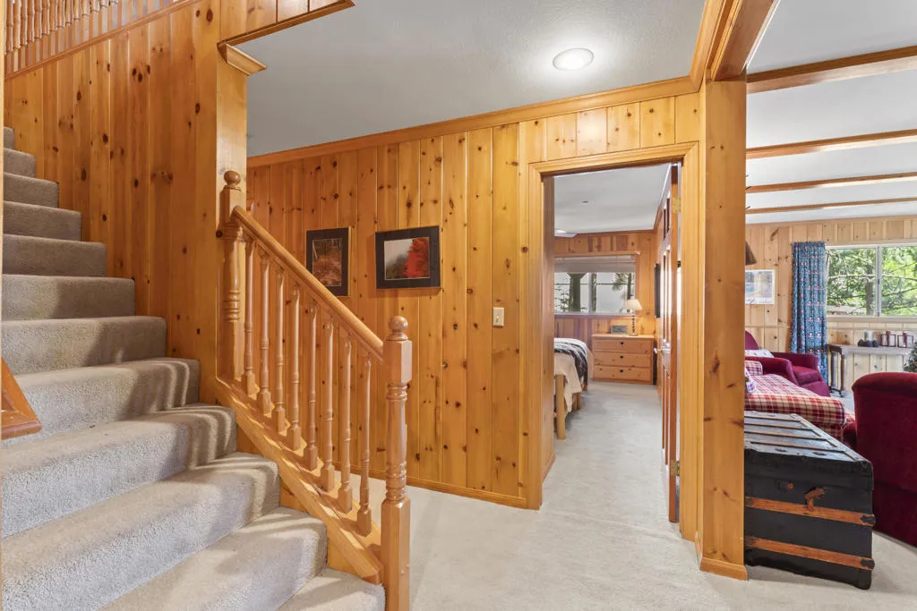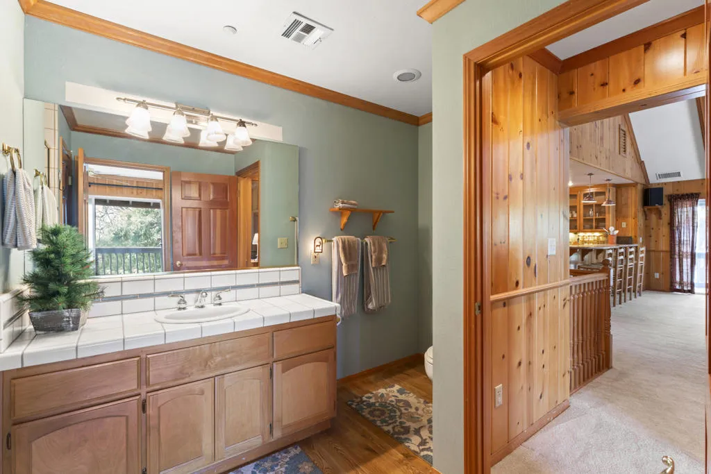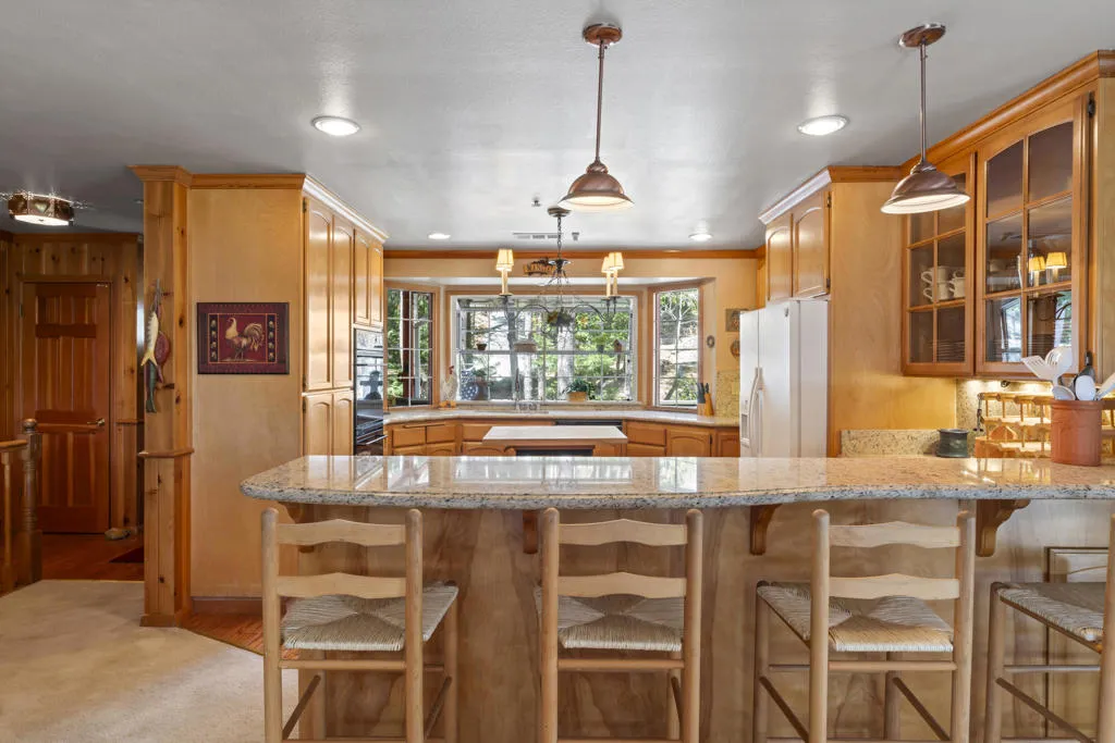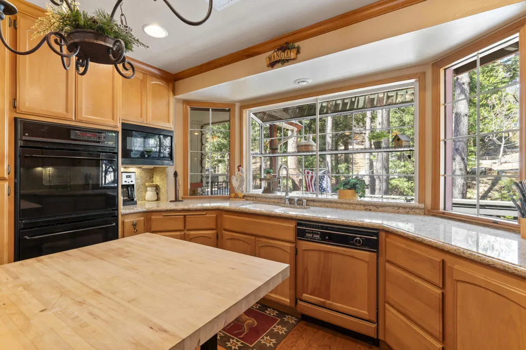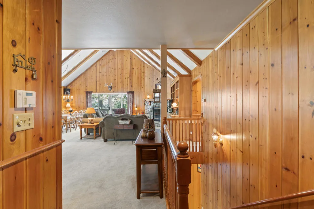 Experience mountain living in this beautifully remodeled Lake Arrowhead retreat with lake rights. Designed to blend luxury, comfort, and natural beauty, this lodge-style home offers five bedrooms--including an impressive bunk room--and four bathrooms. Offered fully furnished and move-in ready, it's an exceptional turnkey opportunity for full-time living, second-home enjoyment, or investment. Level entry provides easy year-round access with an oversized two-car garage and generous driveway, on an paved and maintained county road. Inside, soaring cathedral ceilings and an open-concept great room create a dramatic yet inviting atmosphere, anchored by a striking river rock fireplace. The chef's kitchen features granite countertops, a center island, and breakfast bar seating for five, flowing into a dining area that comfortably seats ten--ideal for entertaining and gatherings. A spacious Trex deck extends the living space outdoors for relaxing or hosting under the pines. The main level includes a well-appointed bedroom with deck access and a full bath. Downstairs, two separate family rooms offer flexible living spaces, along with a luxurious primary suite with its own fireplace and three additional bedrooms. The expansive bunk room features beds, ample storage, and a newly remodeled bath, with potential for alternative use as a gym, studio, or maybe even a separate apartment to help offset your mortgage payments. Multiple decks provide private outdoor retreats, while a fire suppression system adds peace of mind. Previously celebrity-owned and located just minutes from The Village, this home offers convenient access to dining, shopping, and year-round recreation. Only 1.5 hours from Los Angeles, Newport Beach, or Palm Springs--this is a rare opportunity to own a refined mountain getaway in the heart of Lake Arrowhead.