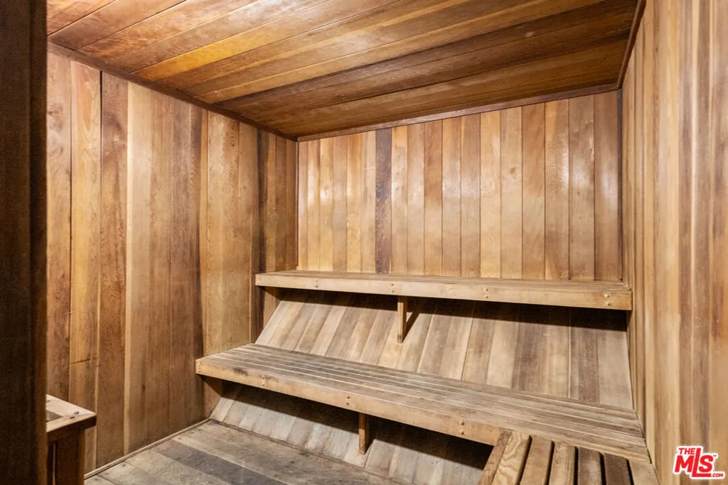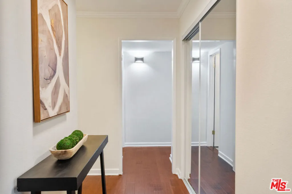 Welcome to the Briarwood, a hidden gem tucked just off the iconic Sunset Strip in the heart of Hollywood Hills West. This spacious 2-bedroom, 2-bath condo spans 1,129 square feet. Step inside to discover an inviting layout with hardwood floors throughout and a living room that seamlessly extends onto a private, generously sized patio. This outdoor oasis stretches along the entire rear of the unit, offering a peaceful retreat with a courtyard ambiance that ensures a sense of seclusion. Freshly painted and updated with some modern light fixtures, this condo home is equipped with central air & heat, and a cozy living room gas fireplace. The large primary bedroom features ample closet space with custom cabinetry and ensuite bathroom with a dual vanity and nicely tiled shower. Meanwhile, the second bedroom is equally inviting, and both rooms have large windows facing the patio adorned with curtains. Another bathroom with shower over tub sits at the end of the hallway for house guests. Unit #104 is conveniently located just off the lobby for easy access, yet enjoys one of the best spots in the building. The Briarwood offers residents a refreshed lobby, a sparkling pool and jacuzzi perfect for soaking up the sun or enjoying an evening under the stars, a sauna, and two assigned tandem parking spaces! A community laundry area, including a washer and dryer just across the hall, makes daily chores a breeze. Nestled on a quiet, tree-lined street dotted with palm trees, this condo is a peaceful haven just moments from Runyon Canyon hiking trails and the 101 Freeway. You'll have the best of Los Angeles at your fingertips - an urban retreat that's still close to everything!