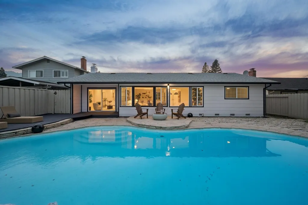 Discover this stunningly updated single-story home ideally located in the heart of Pleasanton. This 3-bedroom, 2-bath residence features expansive living and family rooms highlighted by sleek porcelain tile floors, oversized picture windows with serene backyard views, and a beautifully refreshed swimming pool. Refined touches such as crown molding and a modern clean-burning ethanol fireplace enhance the home’s stylish yet comfortable atmosphere, perfect for relaxing or hosting guests. The chef-inspired kitchen showcases quartz countertops, porcelain tile flooring, and an eye-catching waterfall island centerpiece. Additional improvements include two fully renovated bathrooms, recently updated flooring throughout, a recently replaced roof, upgraded HVAC ducting, and a recently installed water heater. Conveniently situated near highly regarded schools, parks, BART, major freeways, and endless shopping and dining options, this property is an exceptional opportunity for both commuters and families, with Stoneridge Mall and Muirwood Community Park just a short walk away.